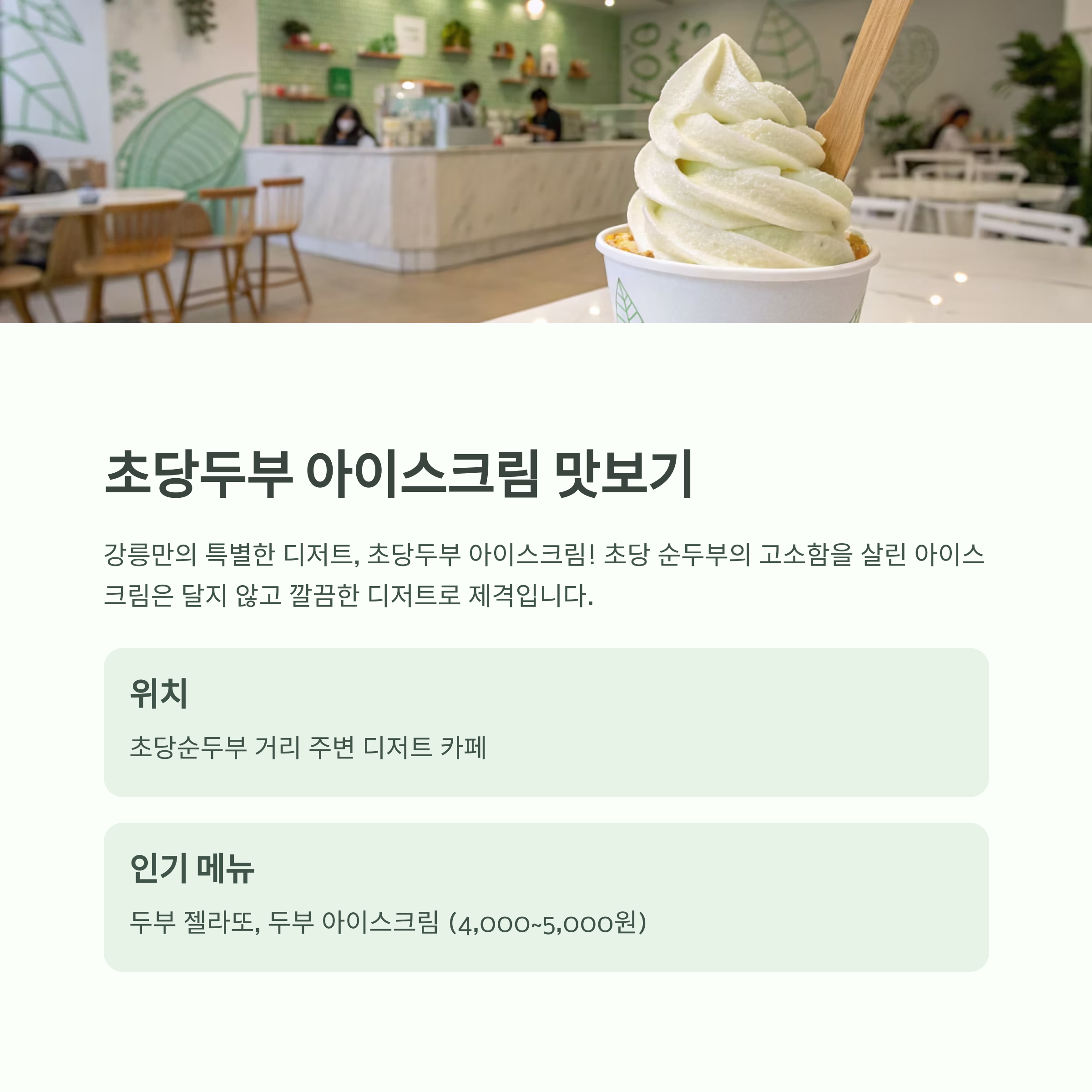 - 인기 메뉴: 두부 젤라또, 두부 아이스크림