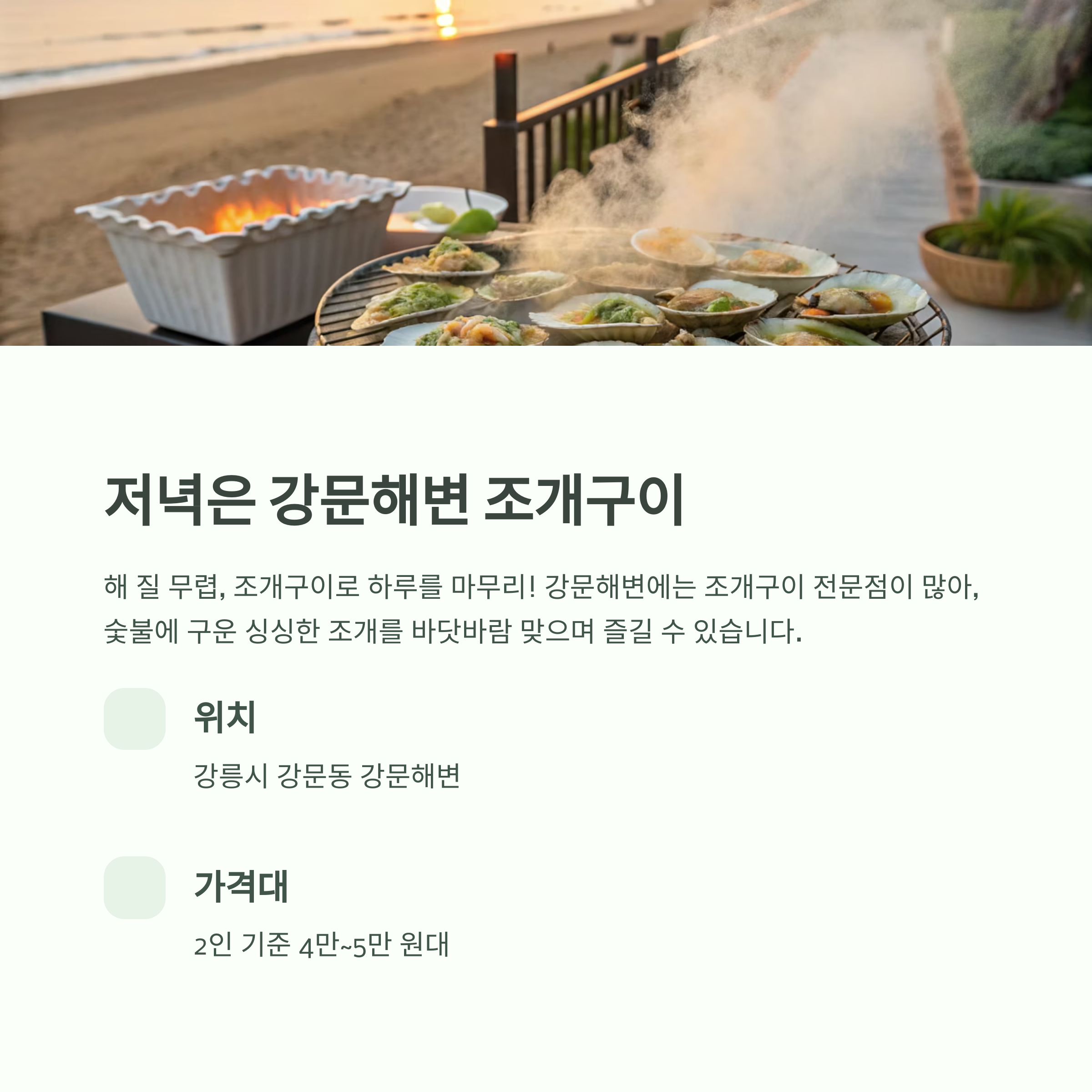5. 저녁: 강문해변 조개구이