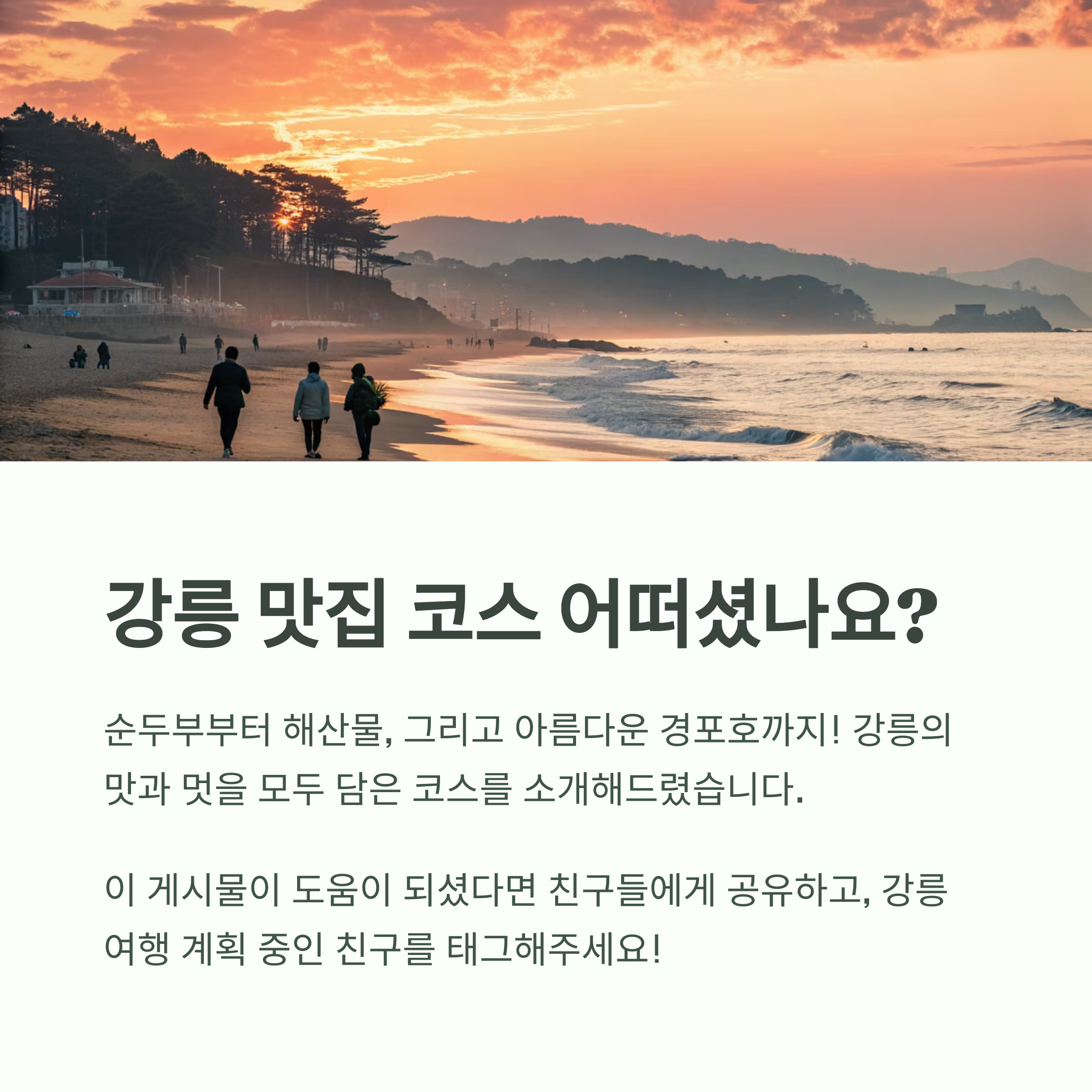 - 추천 카페: 안목커피거리, 경포호 인근 오션뷰 카페