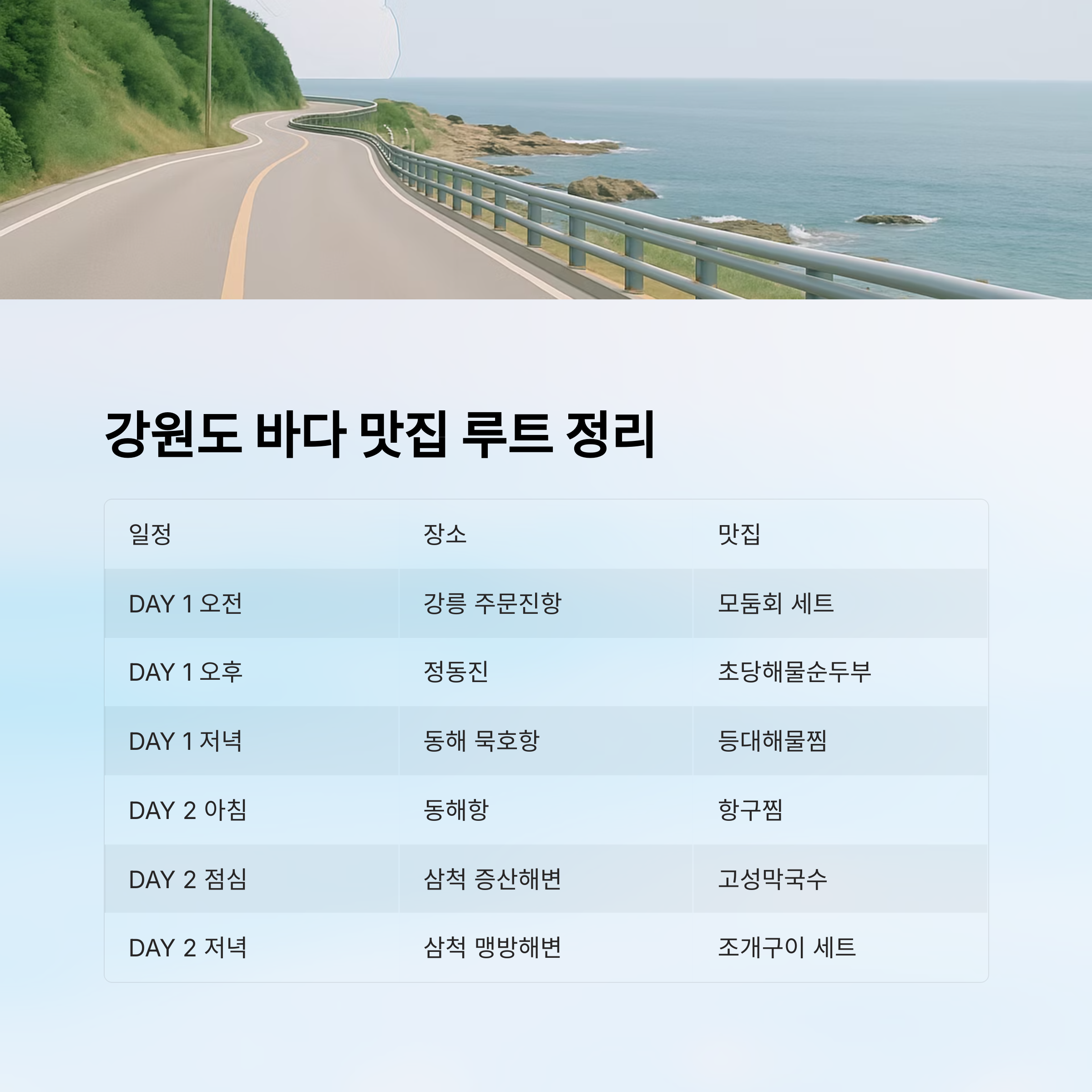 7. 강원도 바다 맛집 루트 정리 (1박 2일 추천)