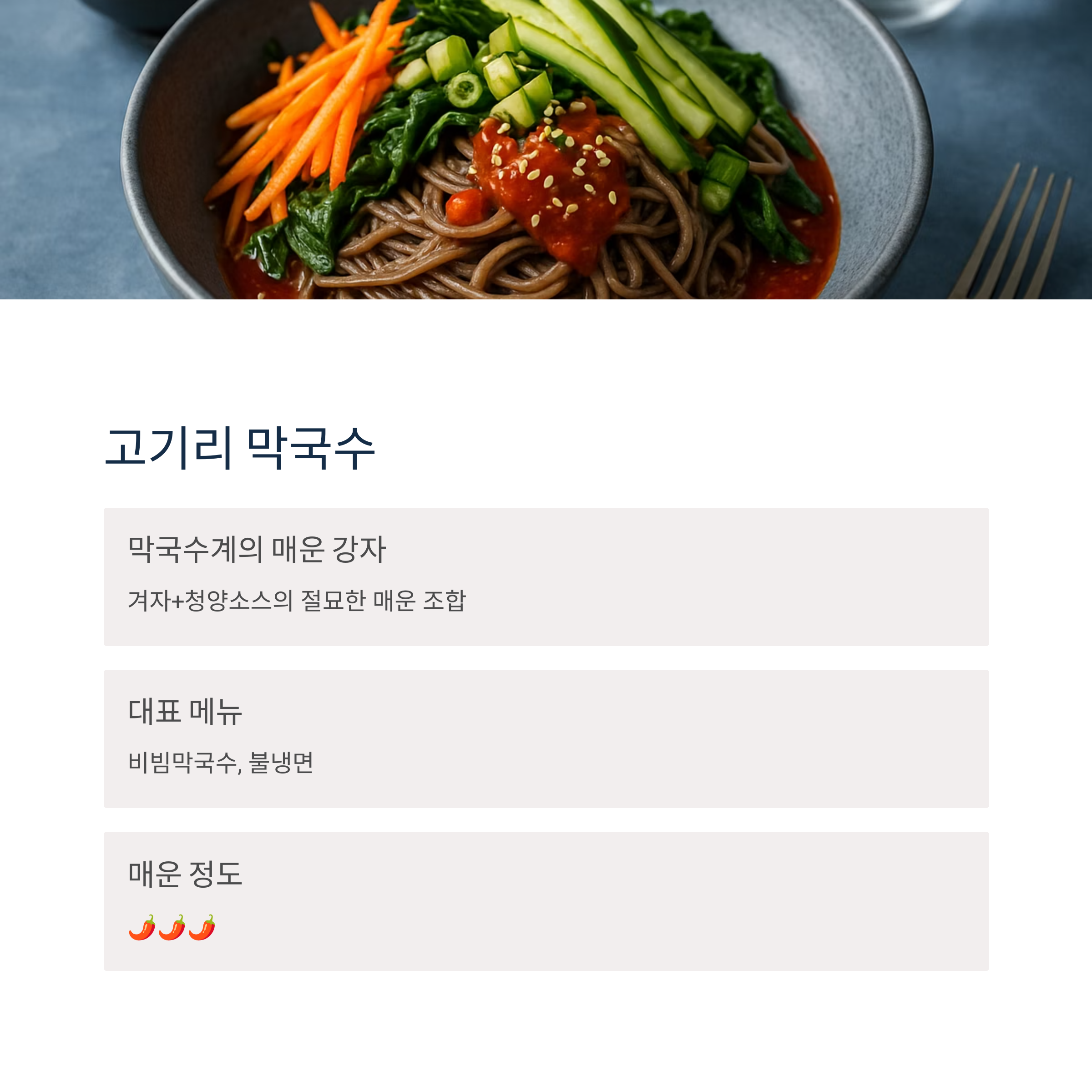 4. 상무지구 '고기리 막국수' – 막국수계의 매운 강자