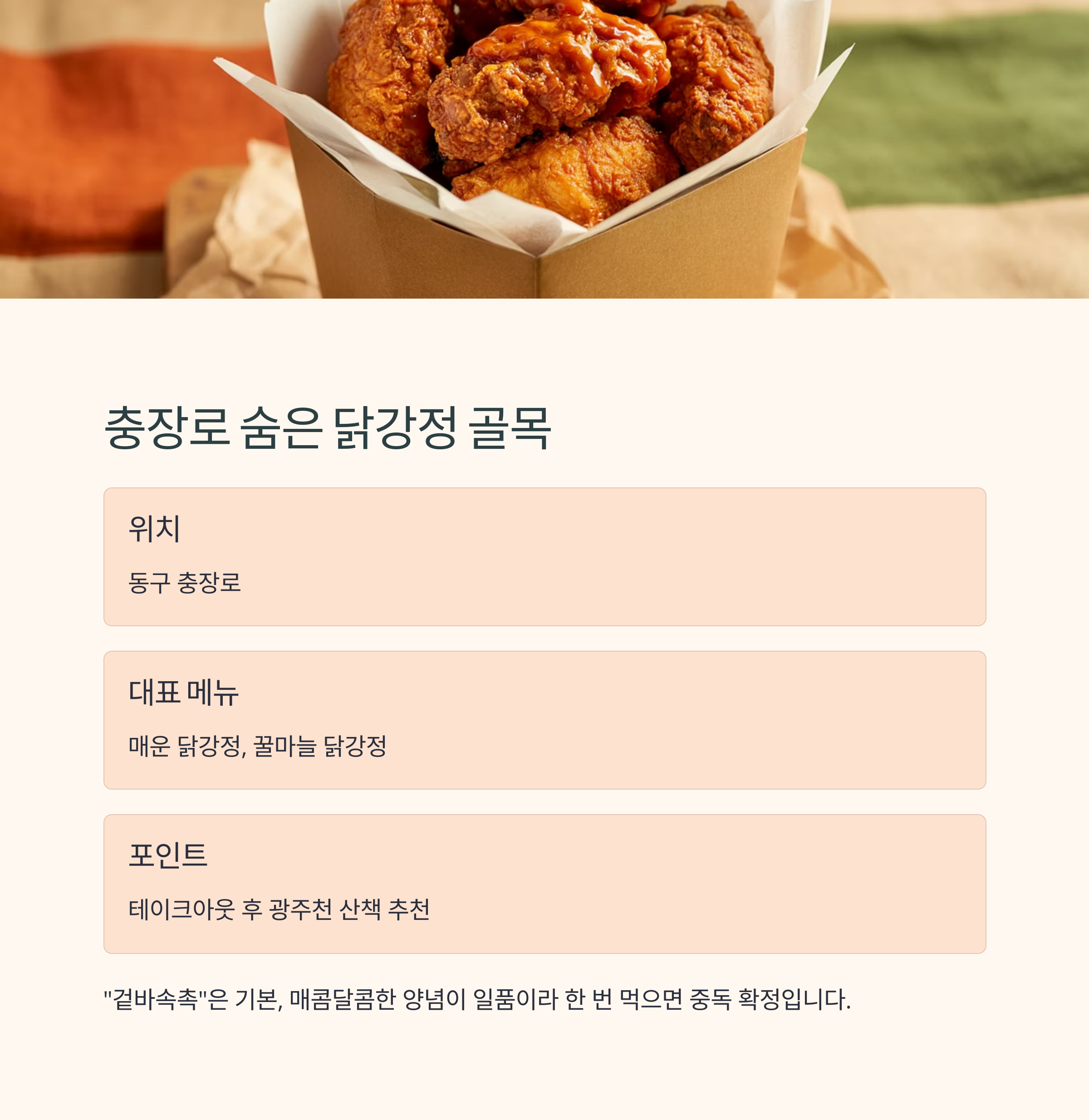 광주 충장로 뒷골목에는 현지인만 아는 닭강정 맛집들이 숨어 있습니다.