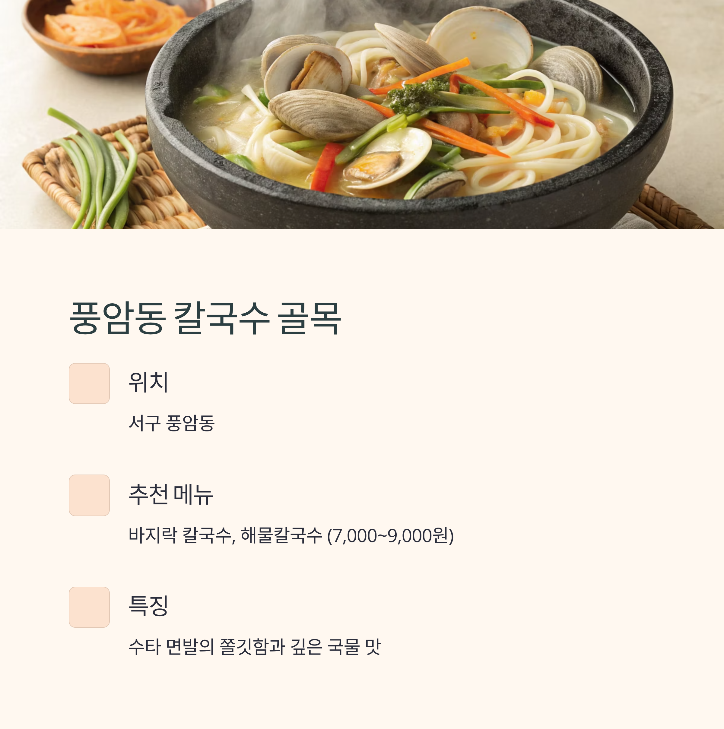• 추천 메뉴: 바지락 칼국수, 해물칼국수