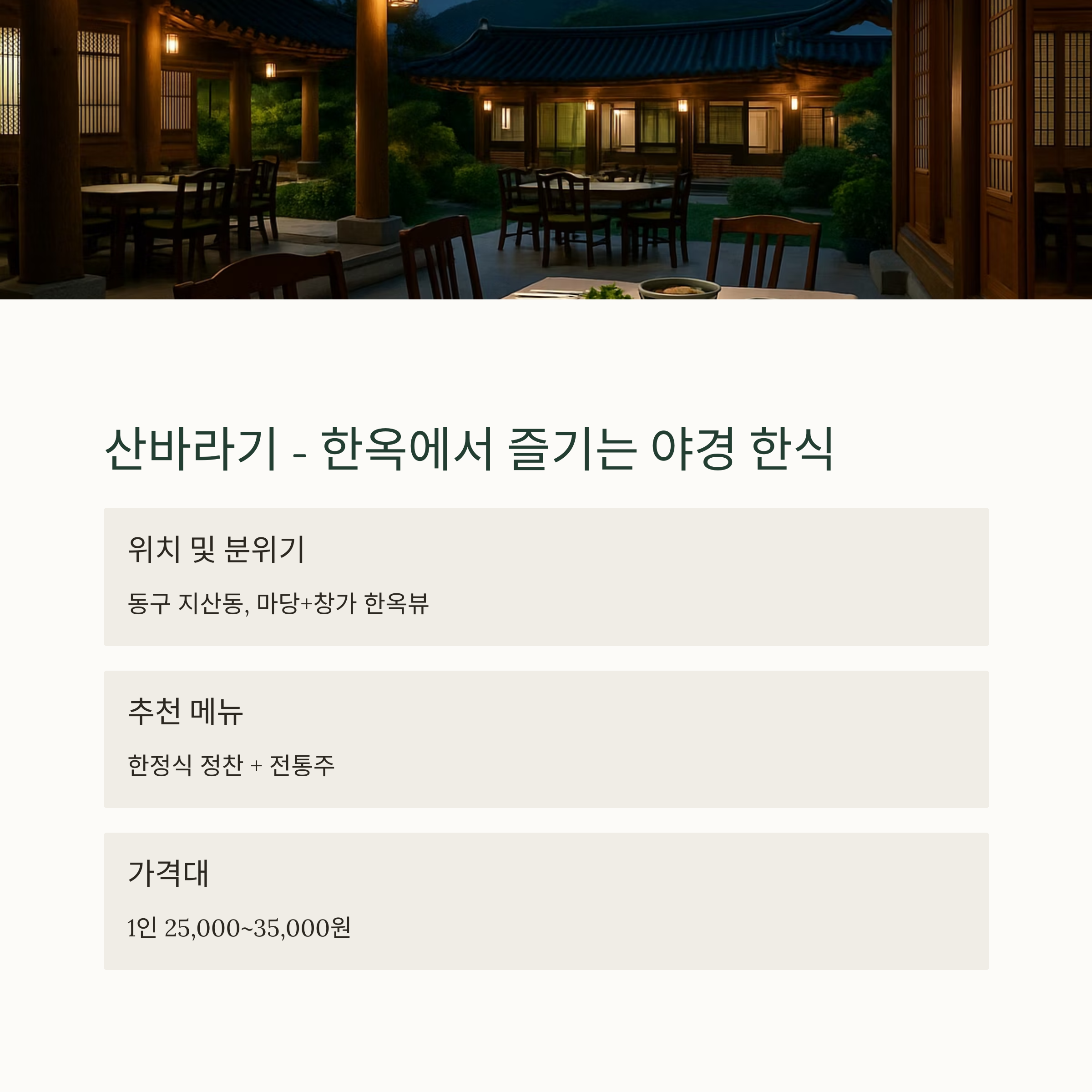 2. 무등산 뷰 ‘산바라기’ – 한옥에서 즐기는 야경 한식