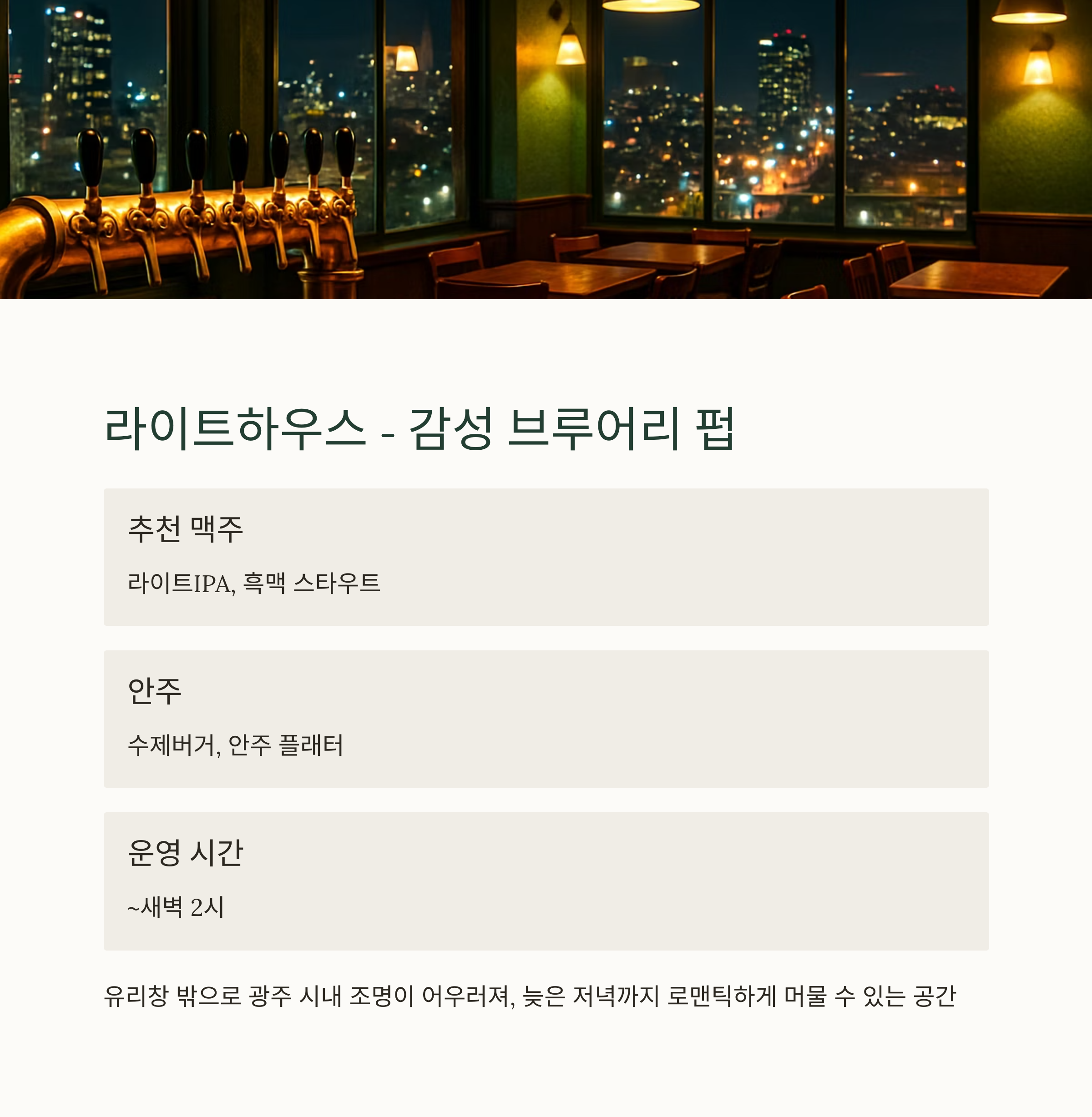 밤 10시 – 금남로 ‘라이트하우스’ 수제맥주 마무리