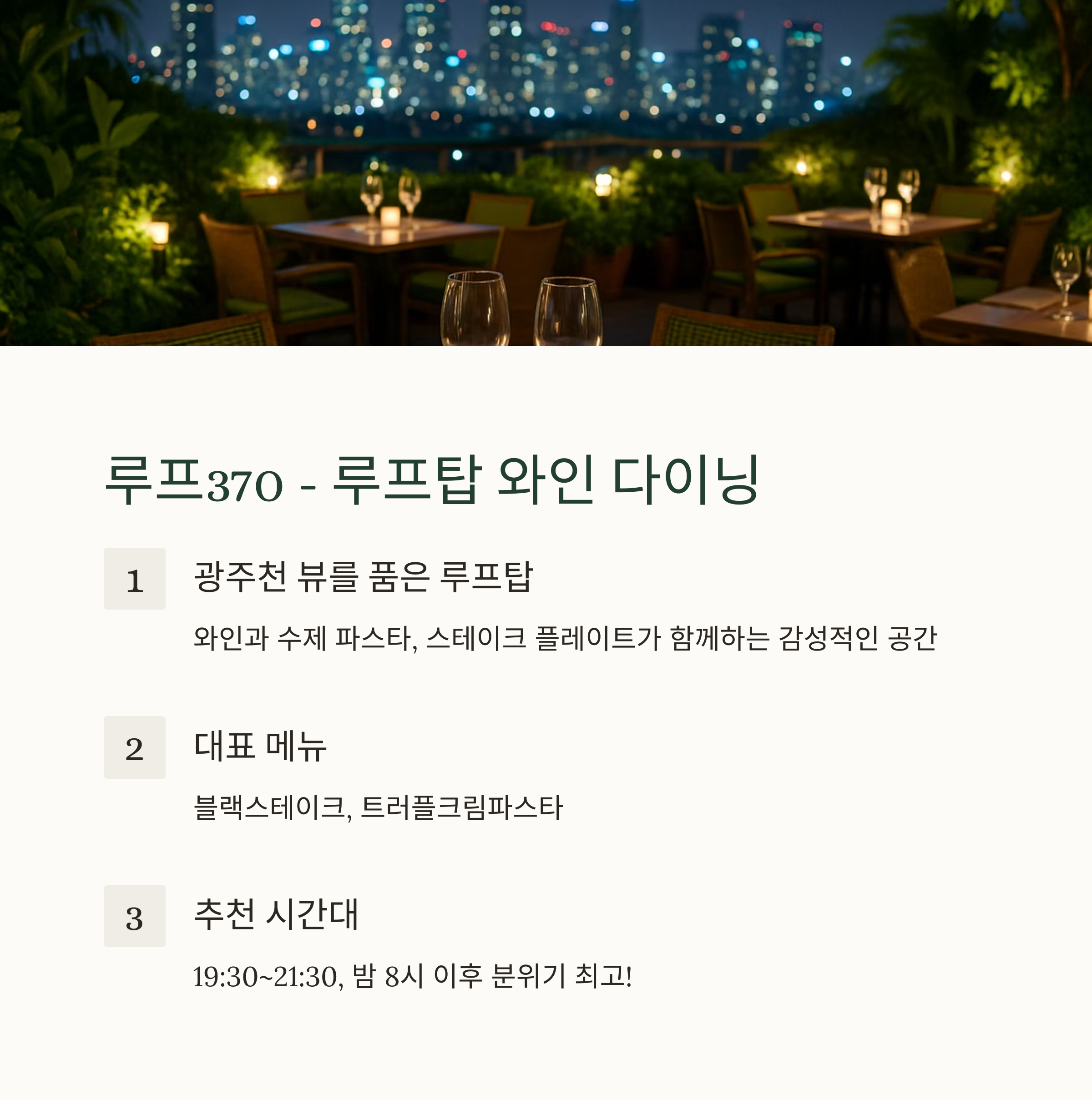 1. 광주천 ‘루프370’ – 루프탑 와인 다이닝