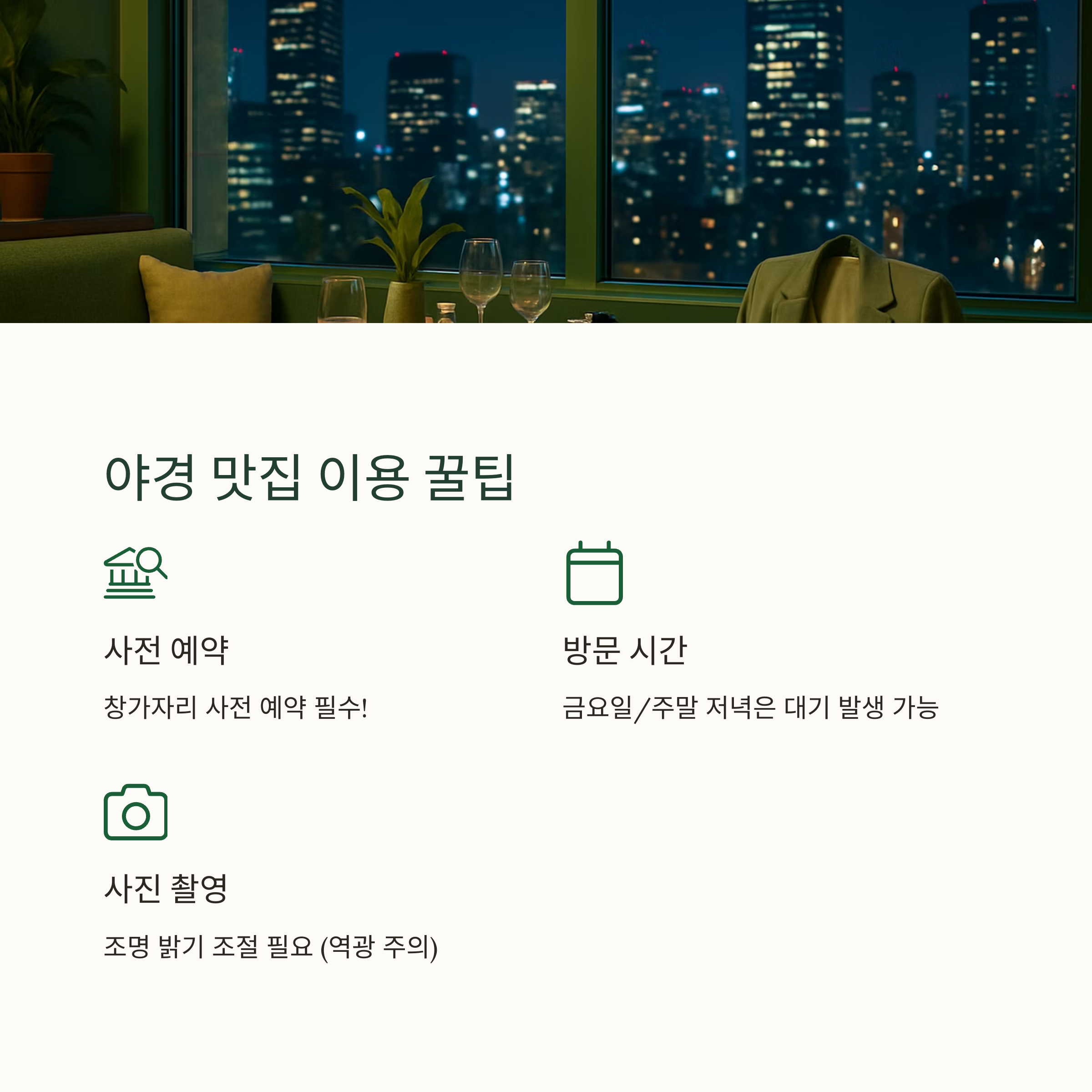 - 뷰 포인트: 루프탑 테이블 + 야경 조명