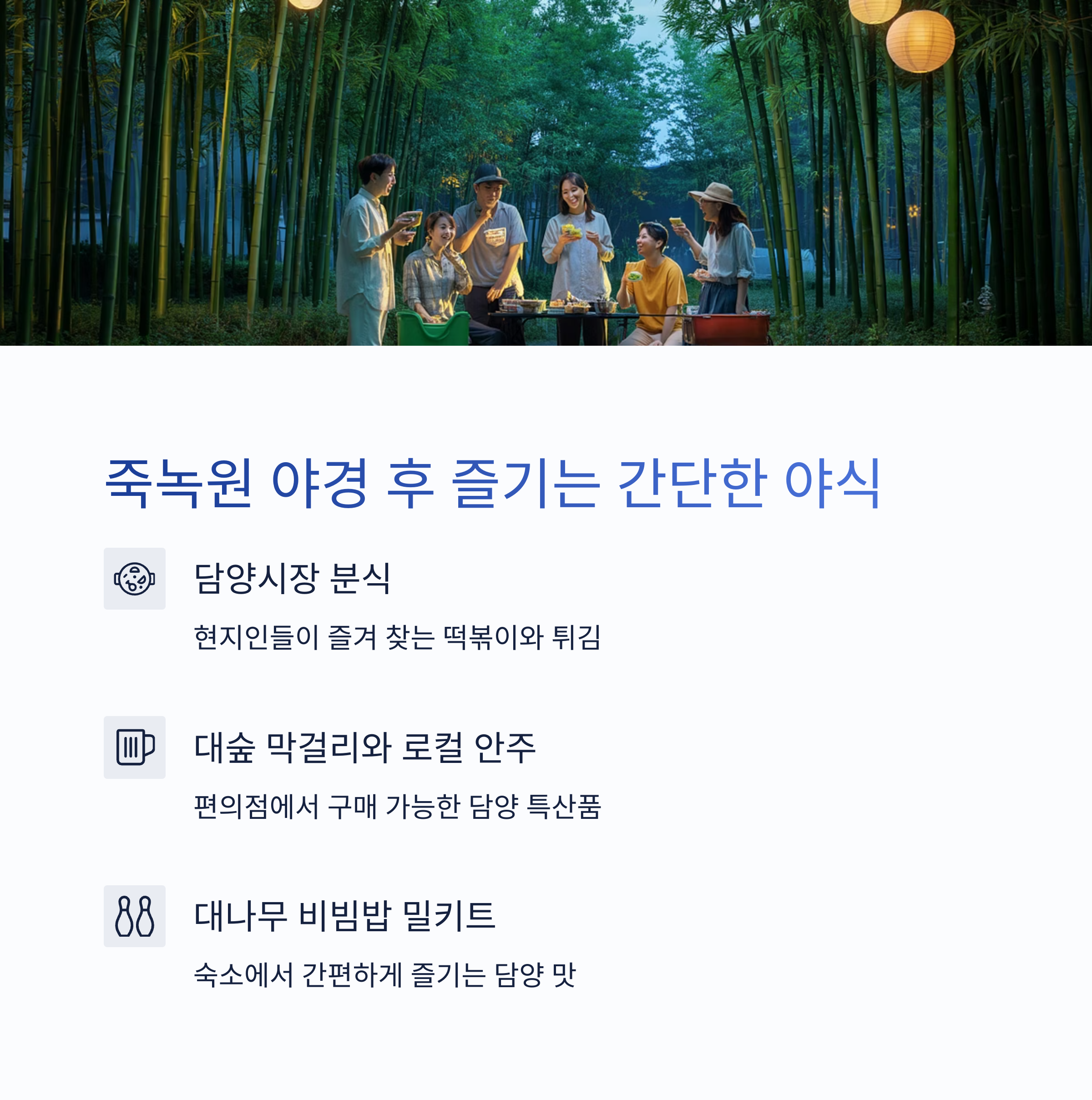 "죽녹원 야경까지 즐겼다면, 야식으로 간단하게 마무리해보세요."