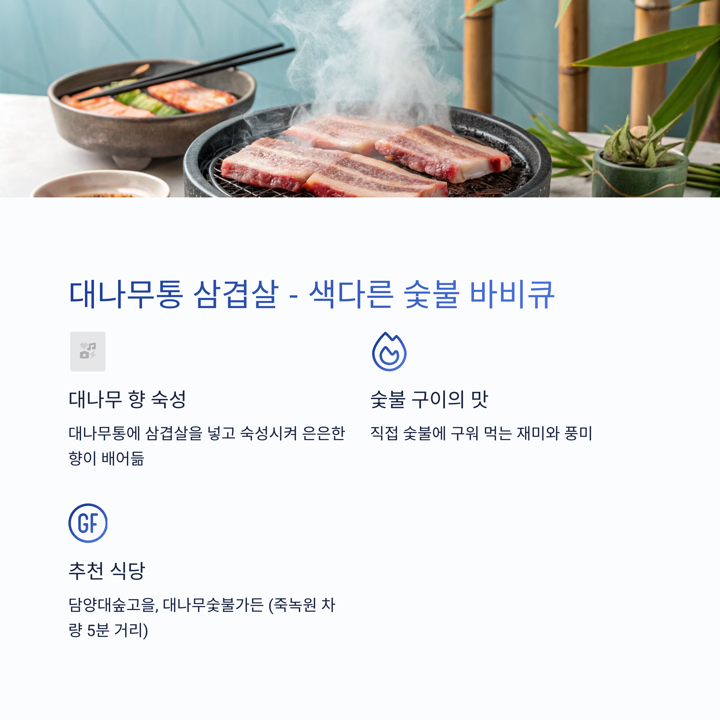 "담양만의 방식으로 굽는 삼겹살, 한 번 먹으면 계속 생각나요."