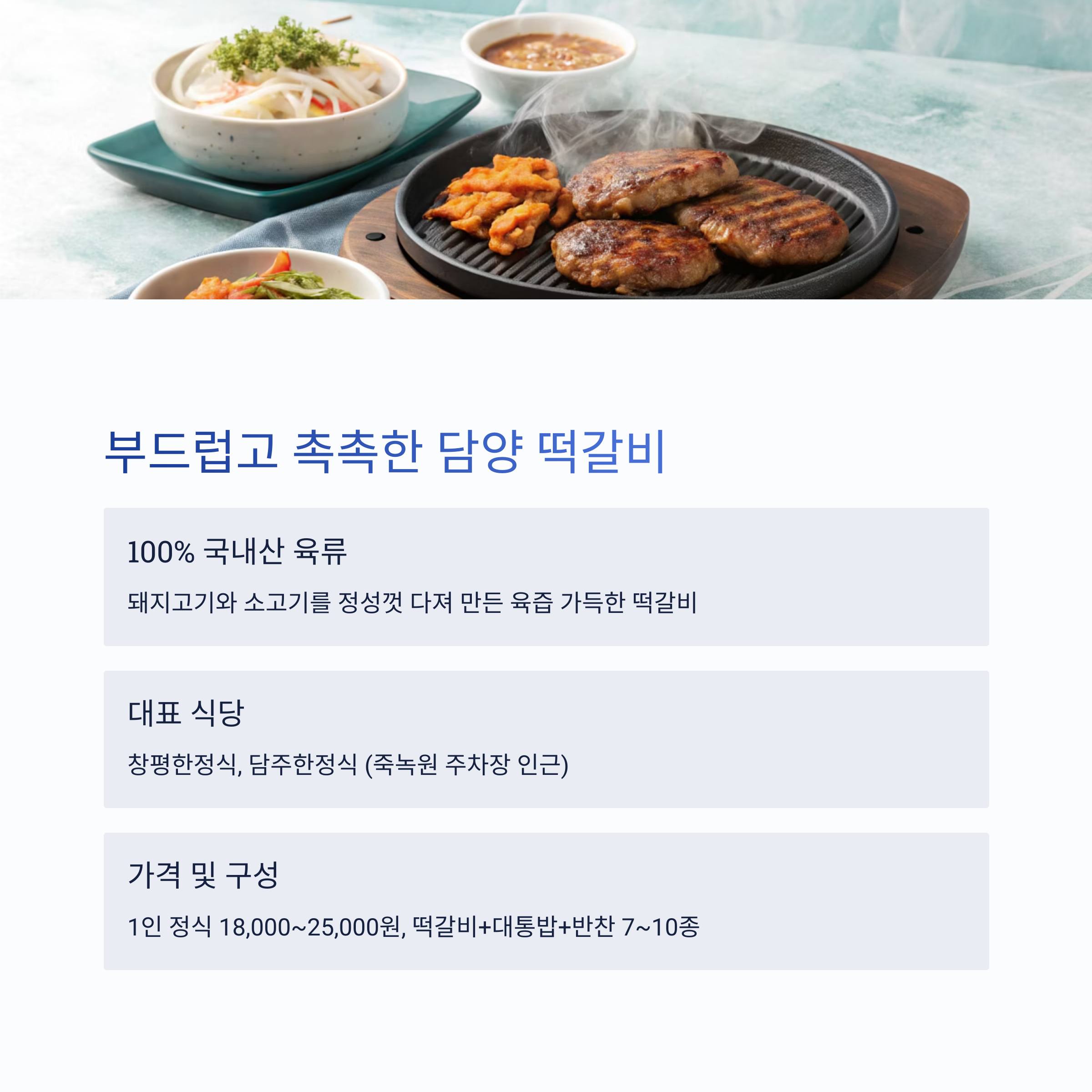| 구성 | 떡갈비 + 대통밥 + 반찬 7~10종 |
