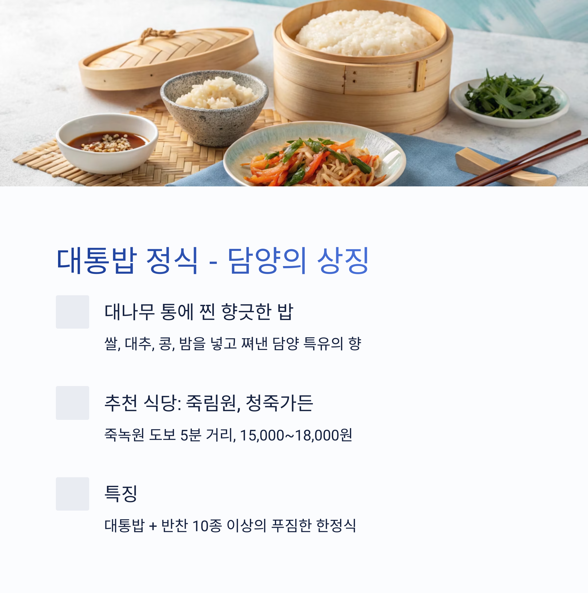 1. 대통밥 정식 - 담양 한정식의 상징