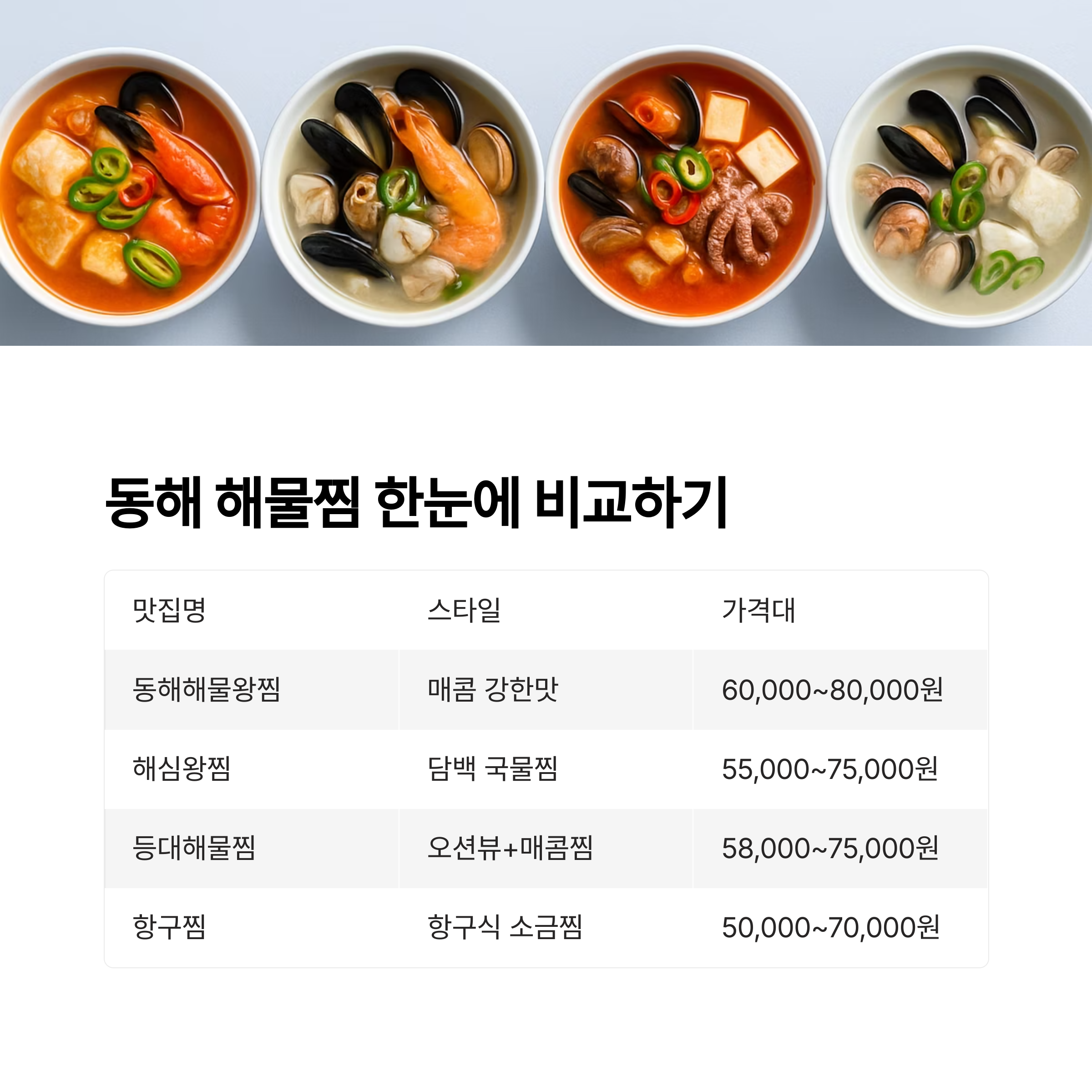 5. 동해 해물찜 비교표 (한눈에 보기)