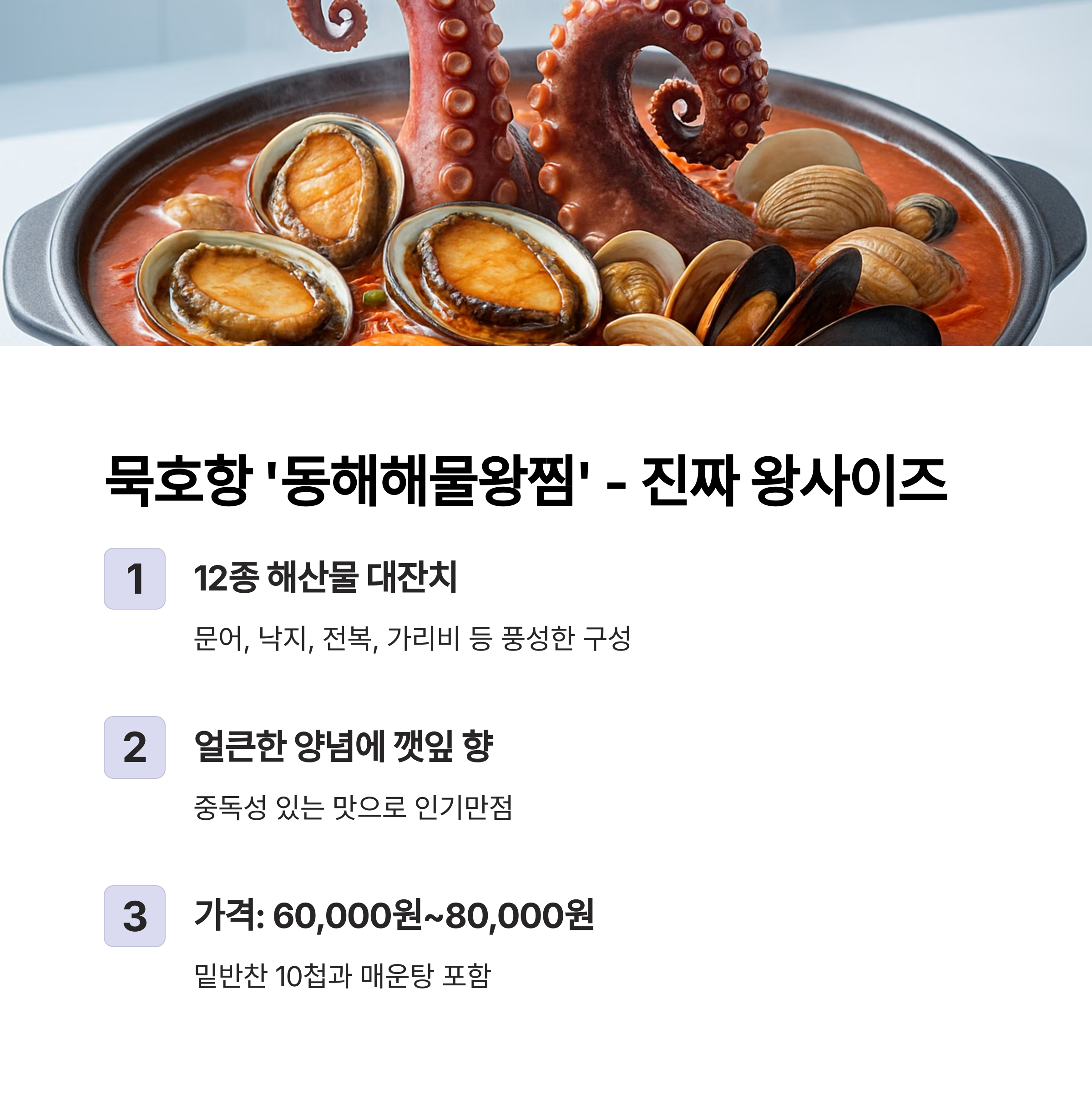 1. 묵호항 '동해해물왕찜' – 진짜 왕사이즈 해물찜