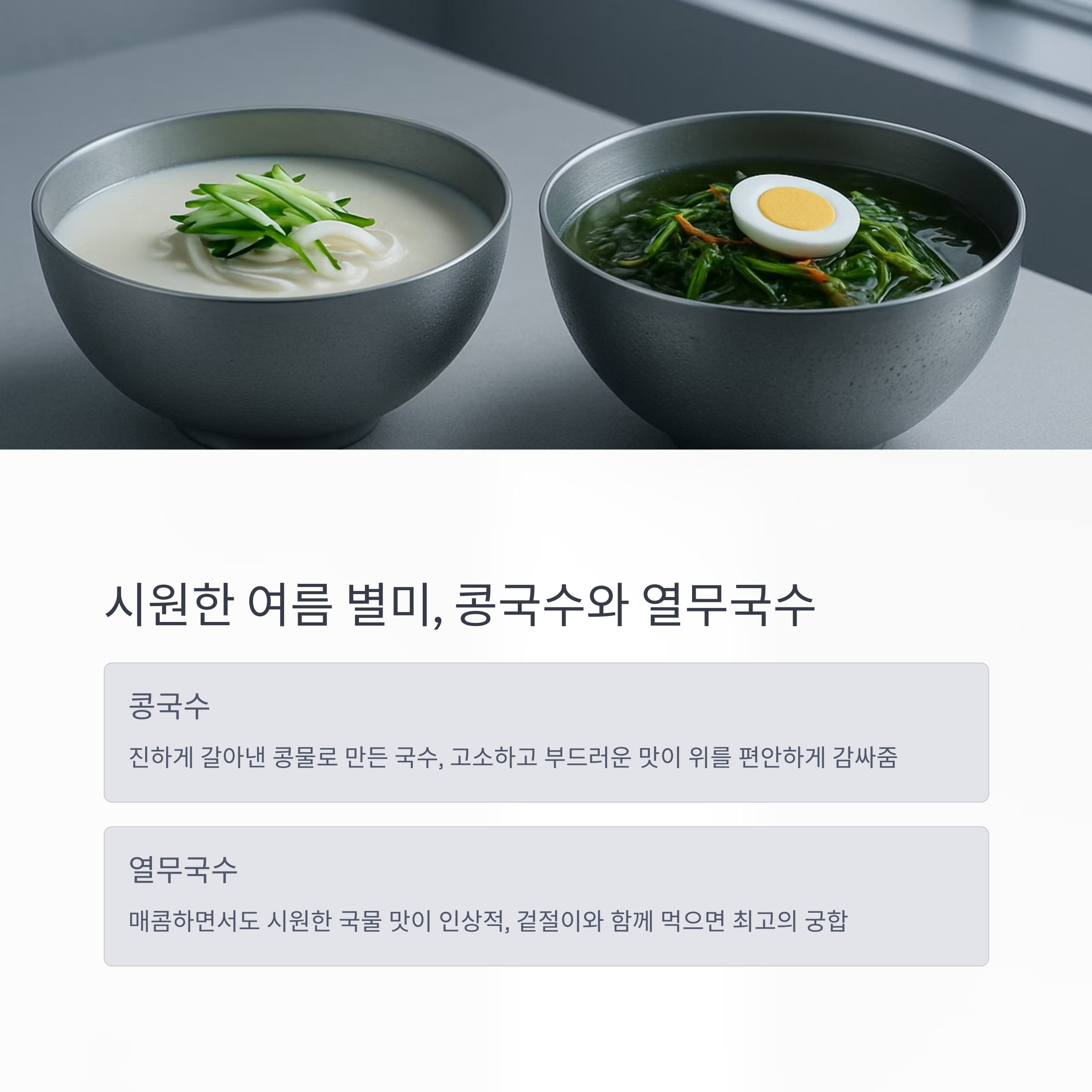 시원한 여름 별미, 콩국수와 열무국수 전문점