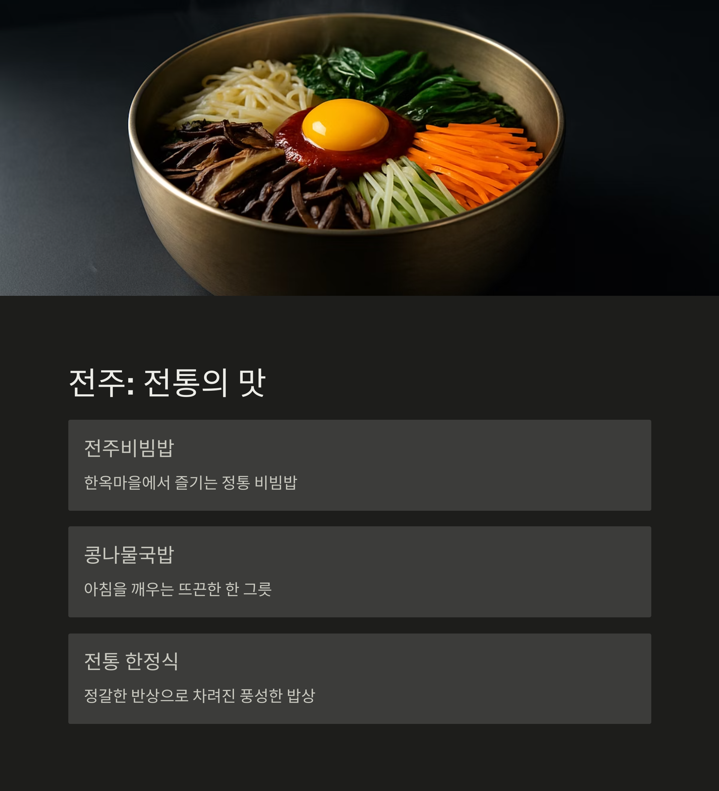 이제 도시별로 꼭 가봐야 할 전라도 맛의 정수를 소개합니다.