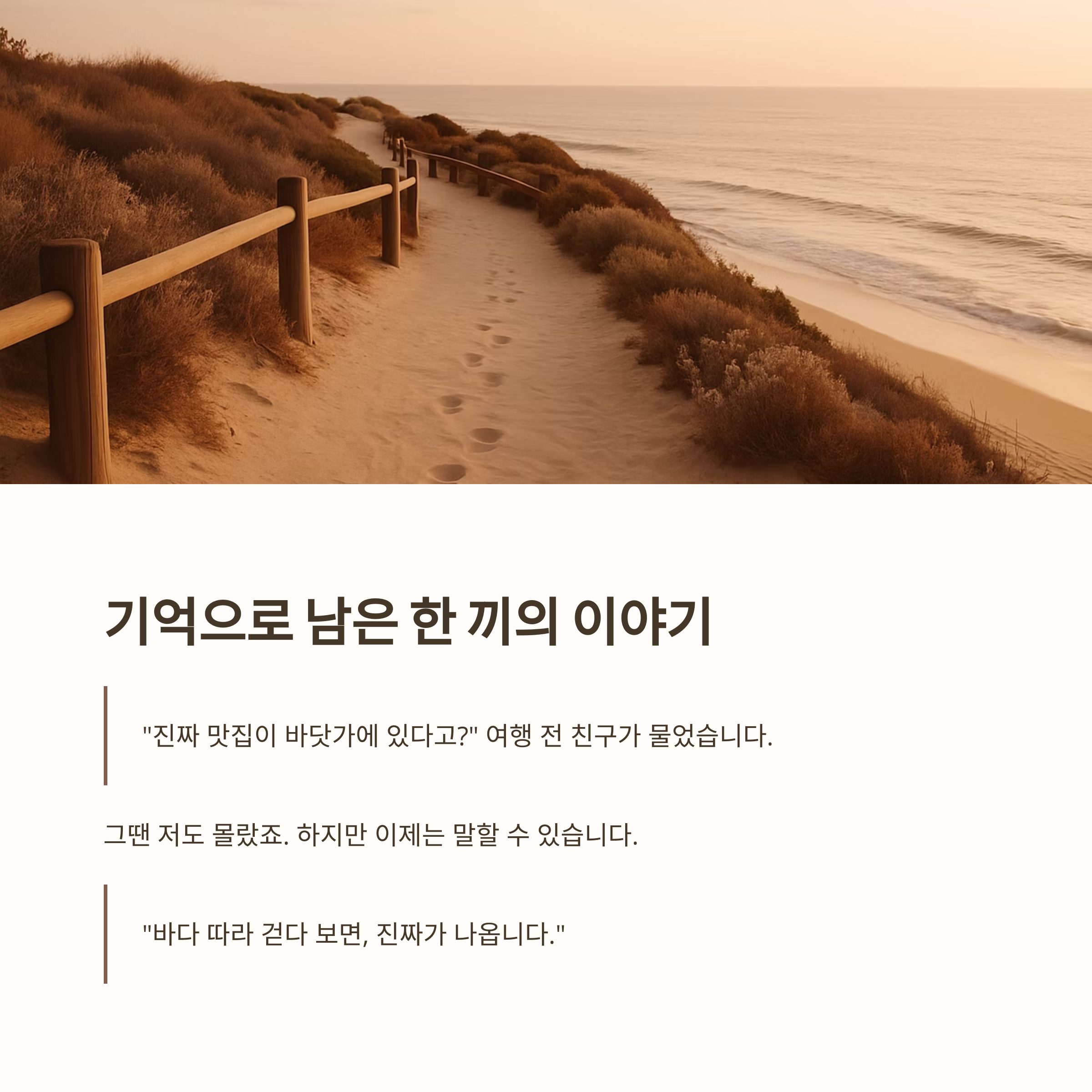 “진짜 맛집이 바닷가에 있다고?”