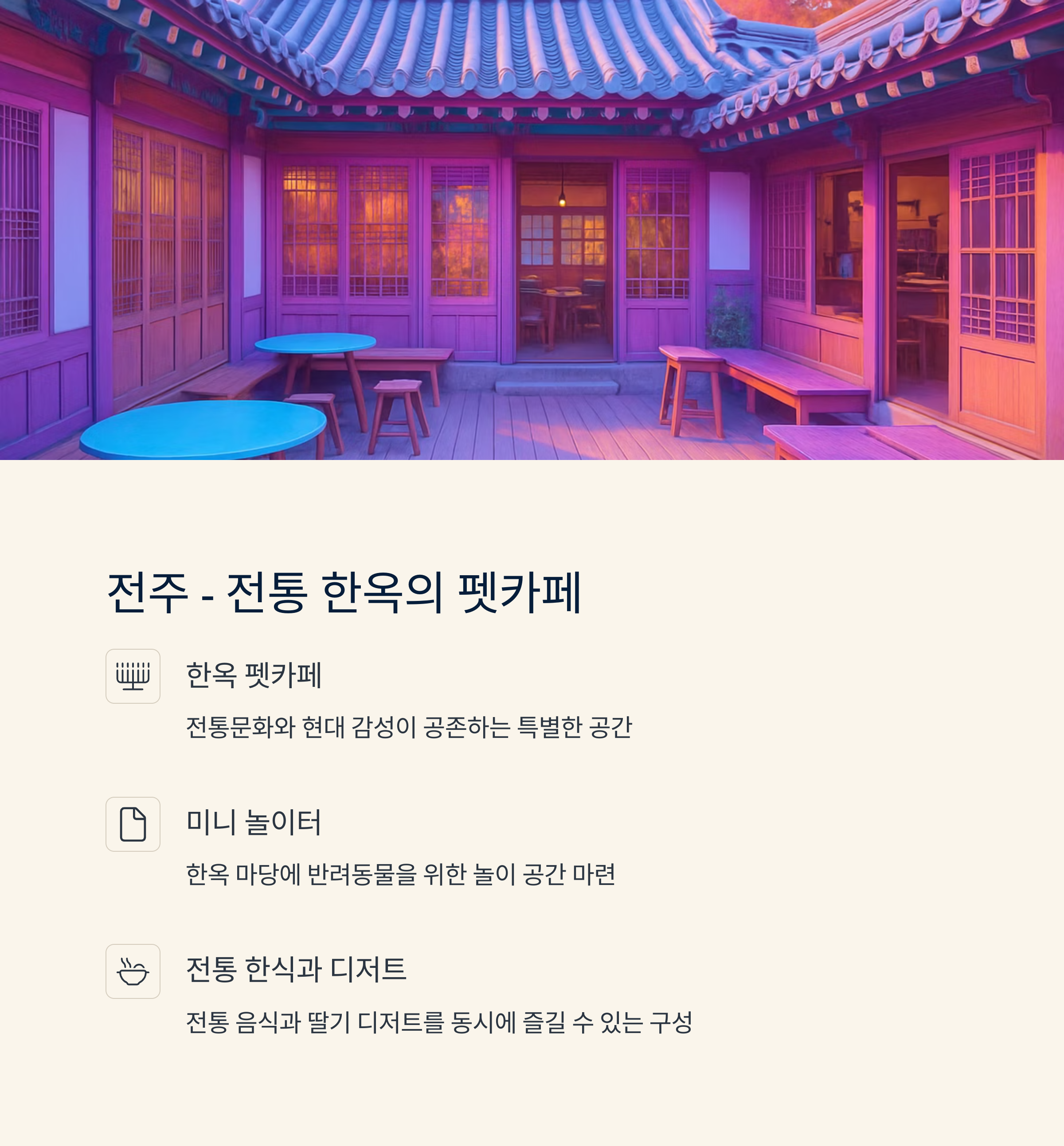 전주는 전통문화와 함께 감성 카페들이 많은 지역으로, 최근에는 한옥 펫카페들도 눈에 띄게 늘고 있습니다.