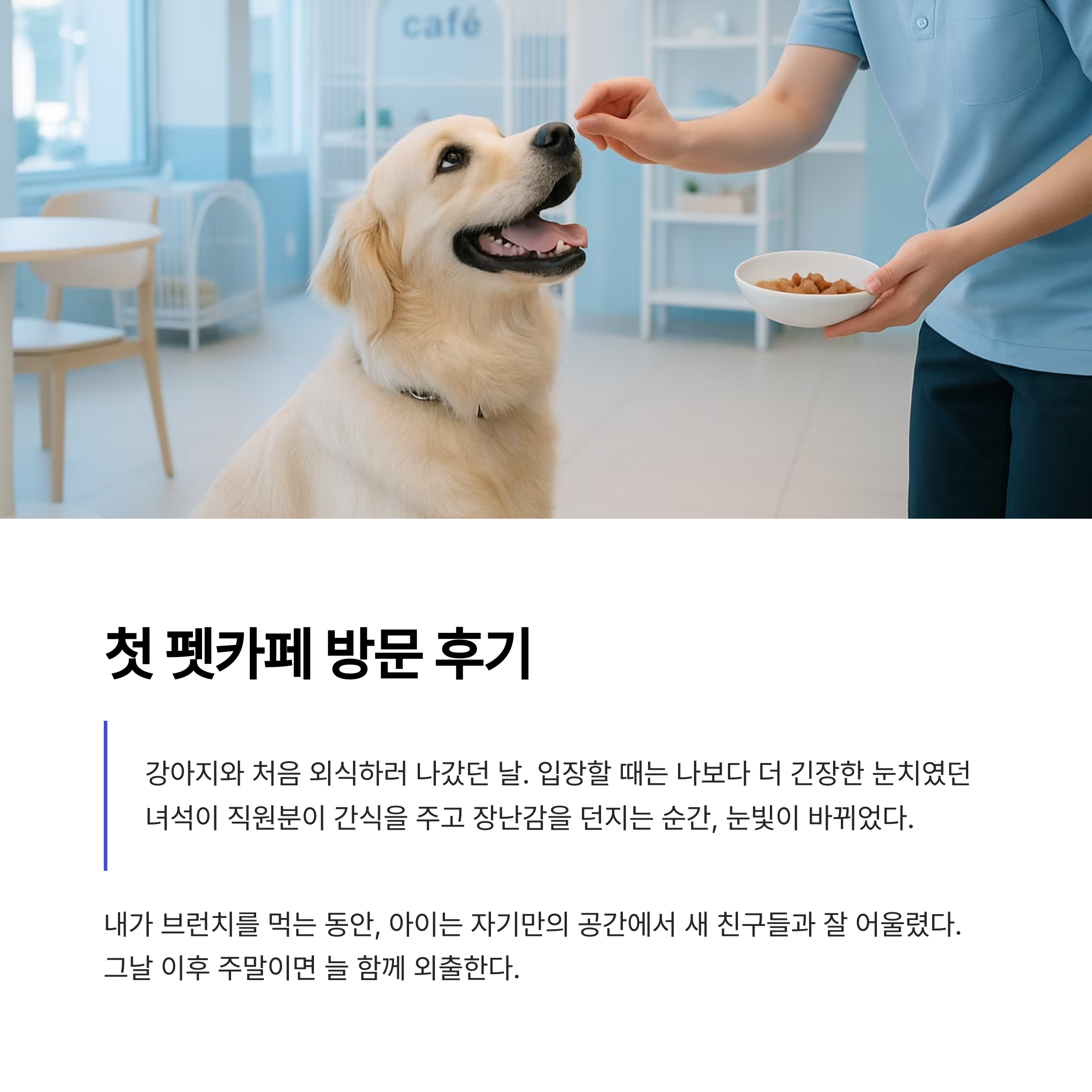 “커피 마시러 갔는데 강아지가 더 신나서 놀다 왔어요” 같은 후기를 쉽게 볼 수 있습니다.