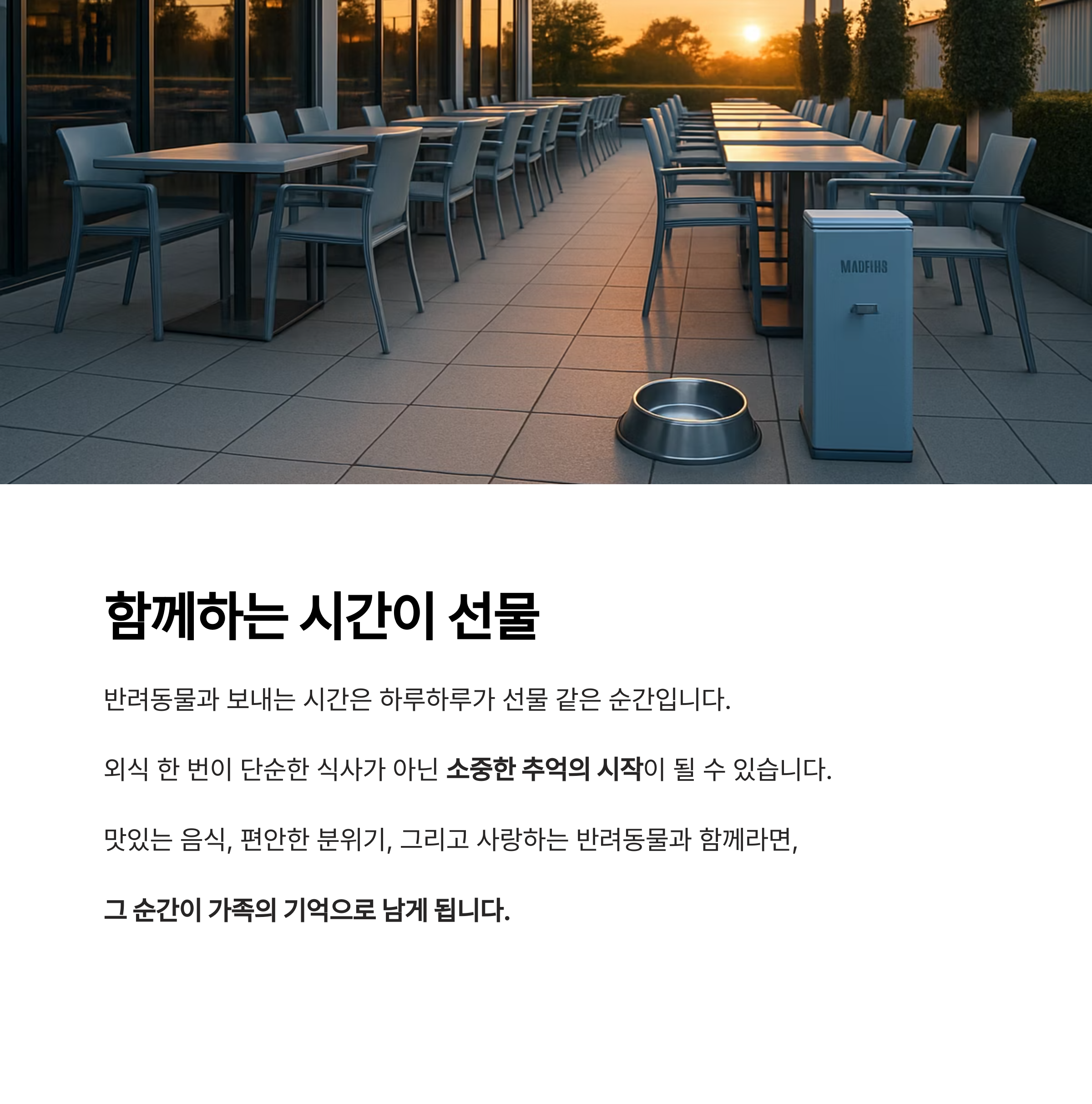 맛있는 음식, 편안한 분위기, 그리고 사랑하는 반려동물과 함께라면,