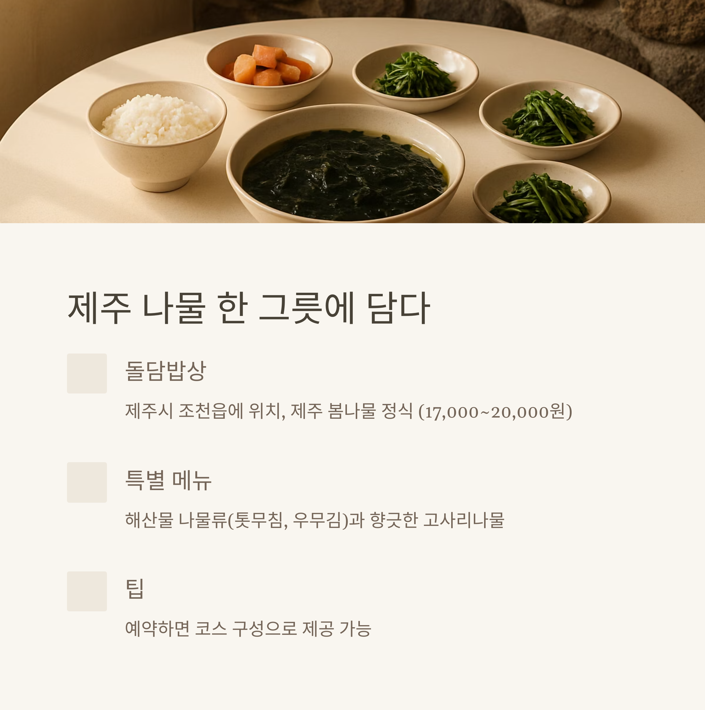 • 추천 메뉴: 제주 봄나물 정식