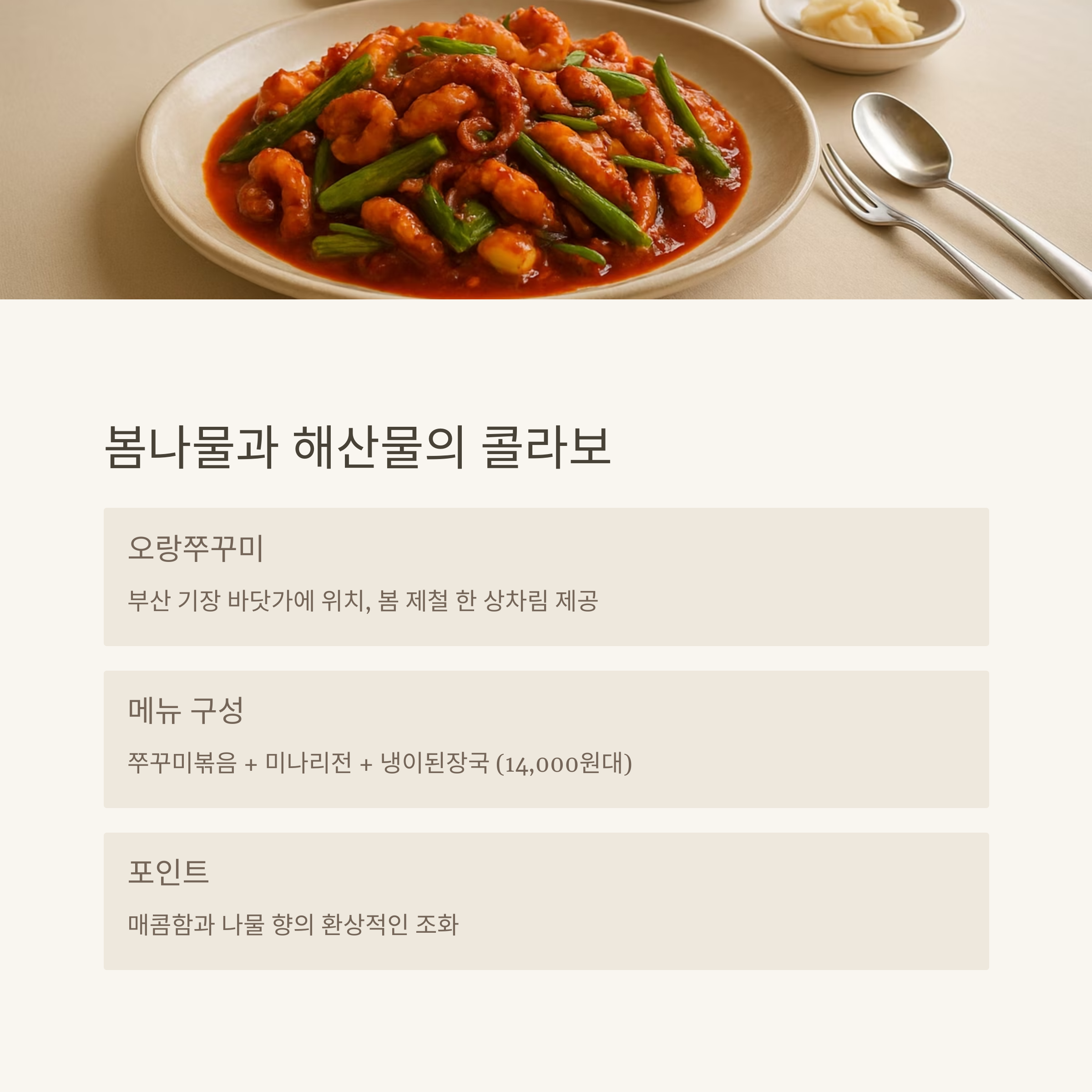 5. 부산 기장 ‘오랑쭈꾸미’ - 봄나물과 해산물의 콜라보