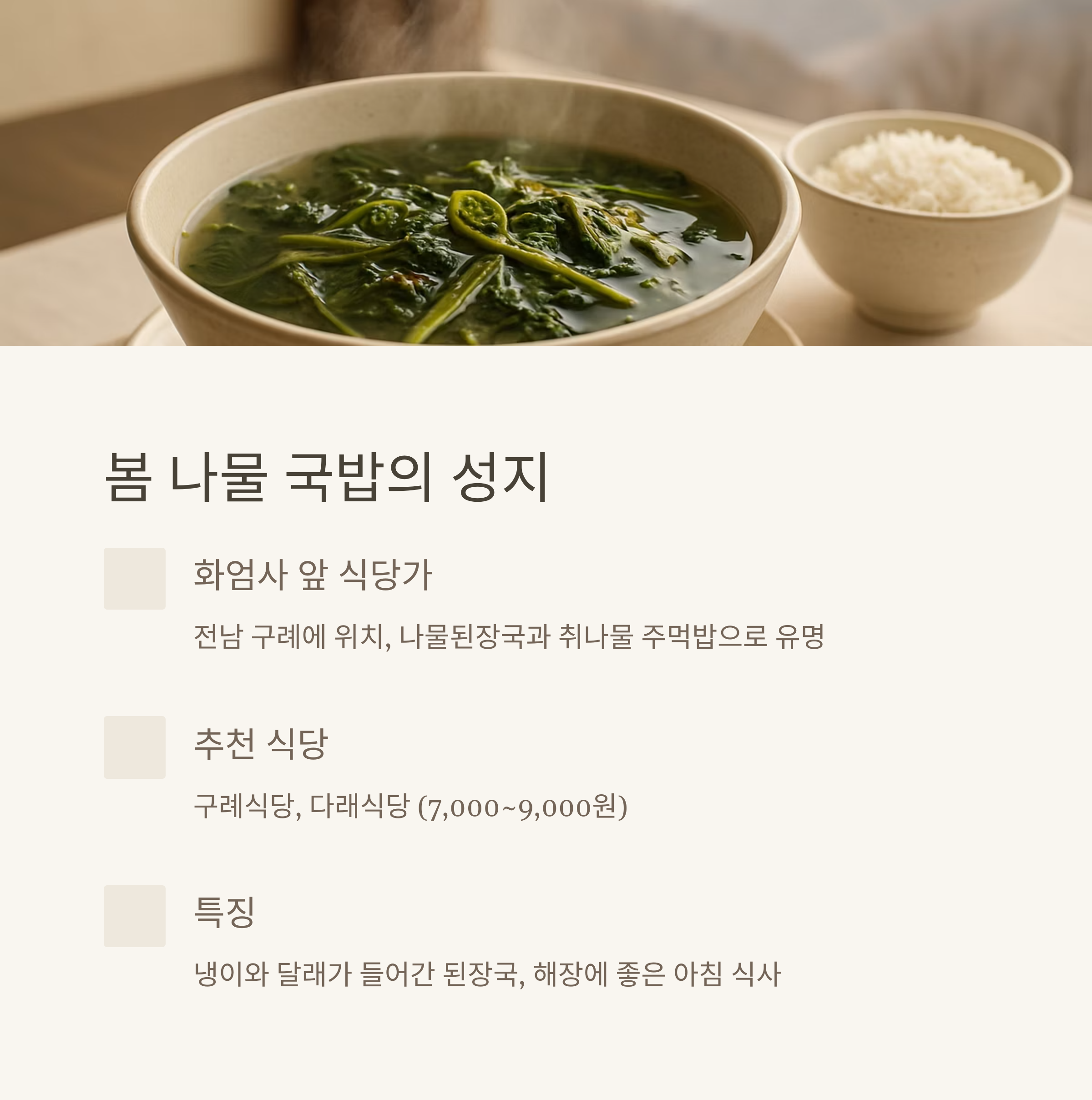 4. 전남 구례 ‘화엄사 앞 식당가’ - 봄 나물 국밥의 성지