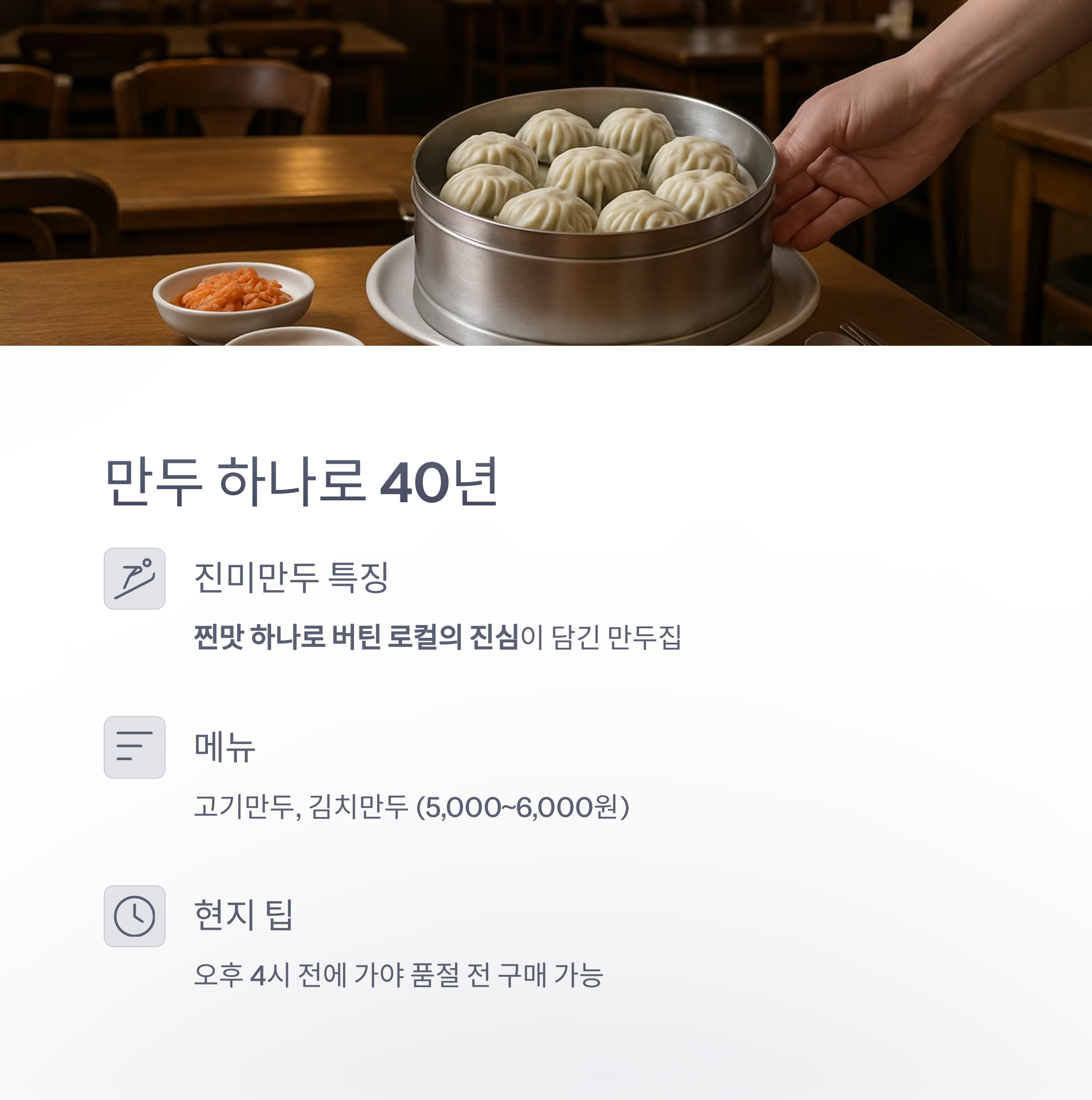 찐맛 하나로 버틴 로컬의 진심이 담긴 만두집입니다.