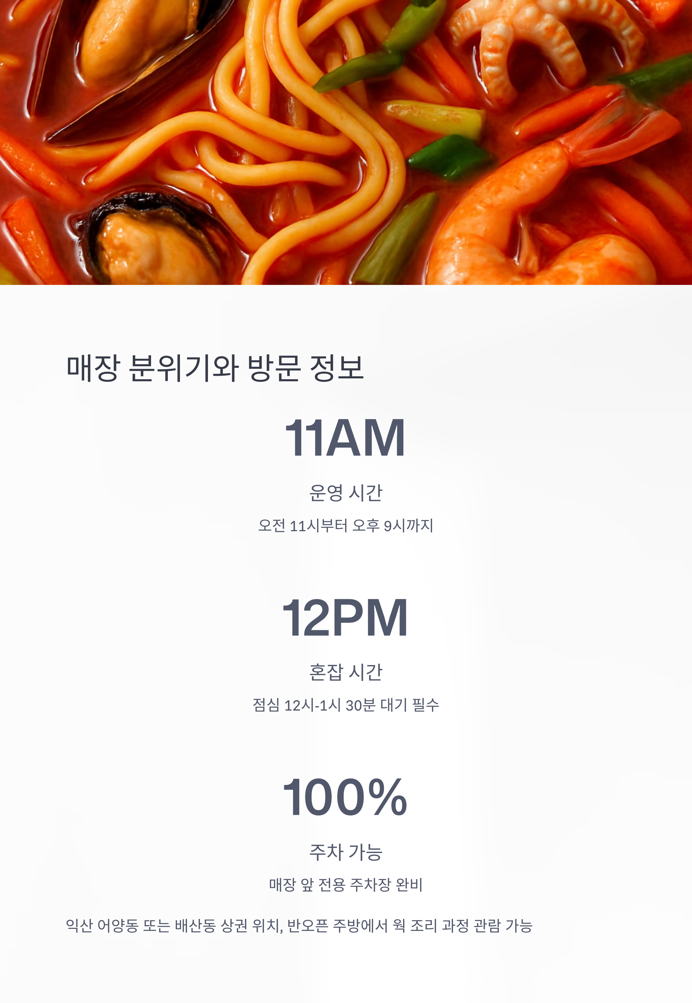 한 숟갈만 떠도 입 안을 감도는 불맛과 해물의 진한 풍미가 인상 깊게 다가옵니다.