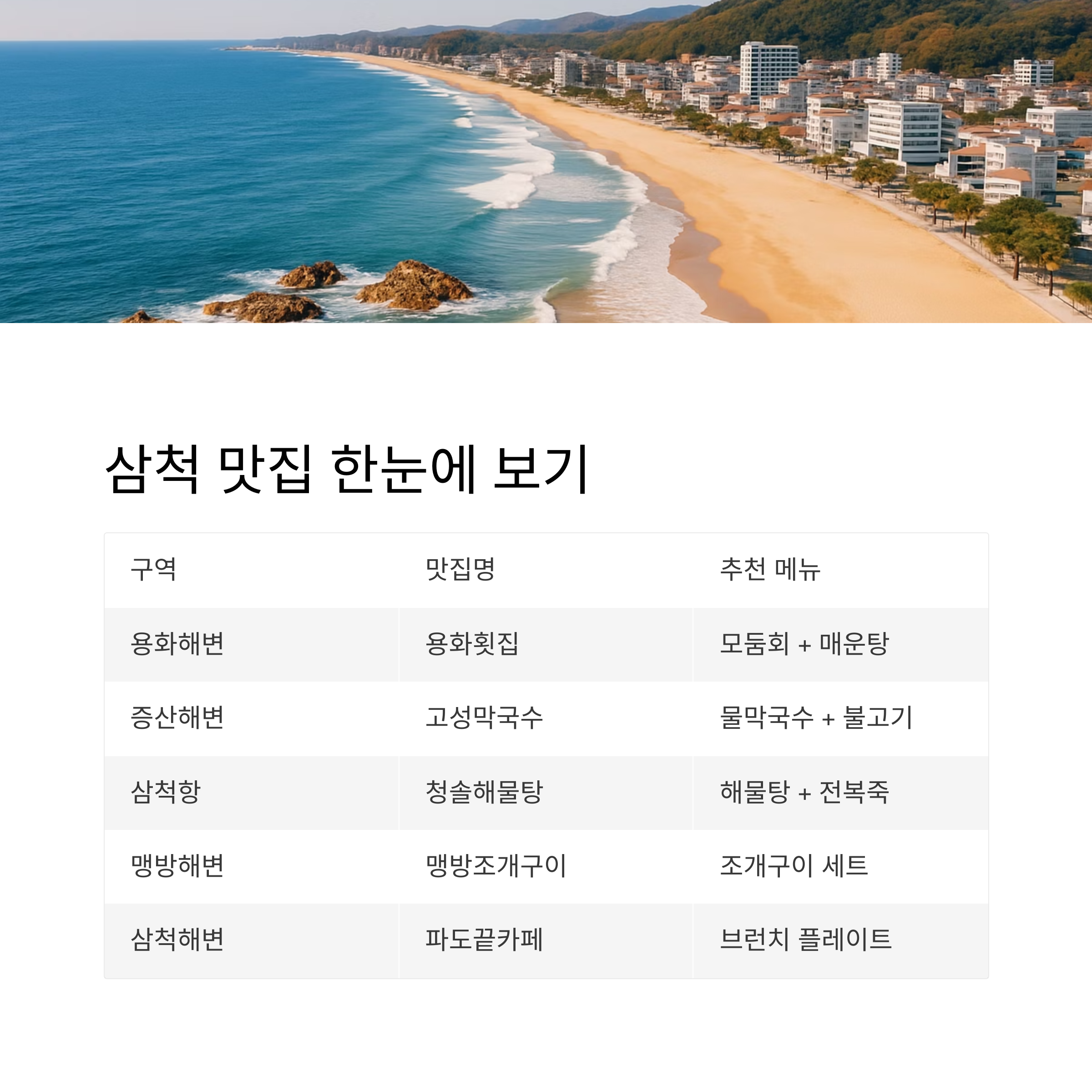 푸른 동해를 바라보며 즐기는 바다의 맛! 삼척의 진짜 숨은 해변 맛집 리스트