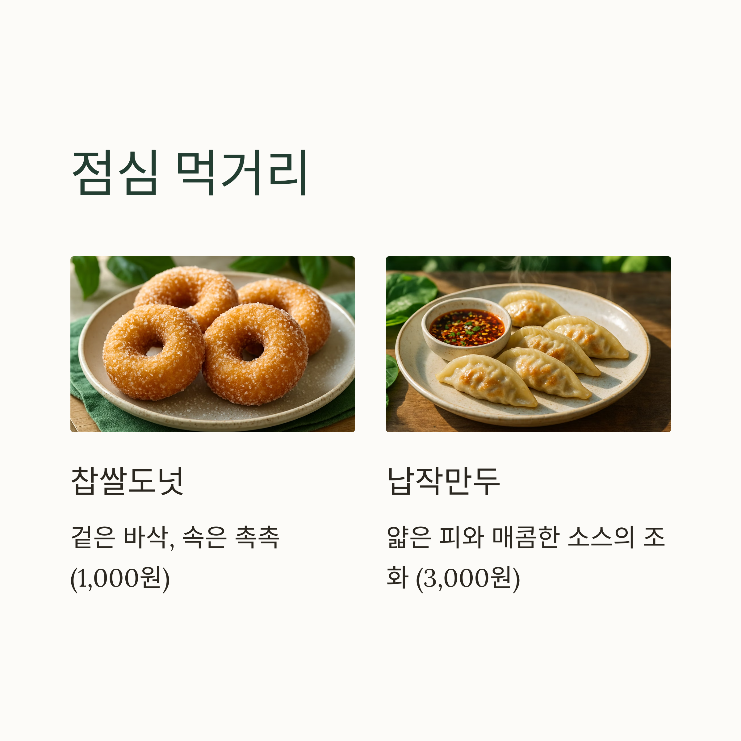 - 찹쌀도넛 : 겉은 바삭, 속은 촉촉