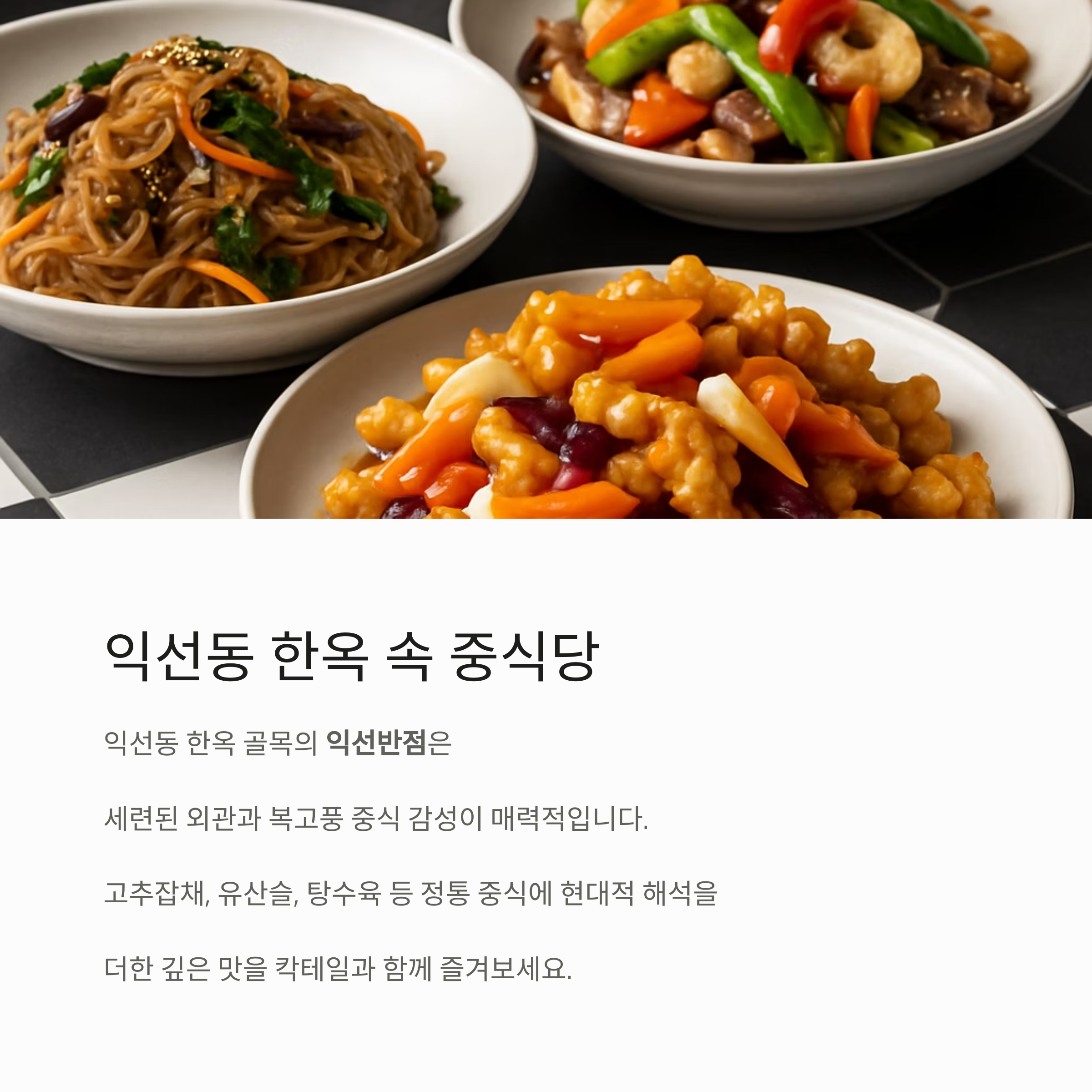익선반점 익선동 고추잡채, 유산슬, 탕수육 뉴트로 감성 한옥 중식 30~60분