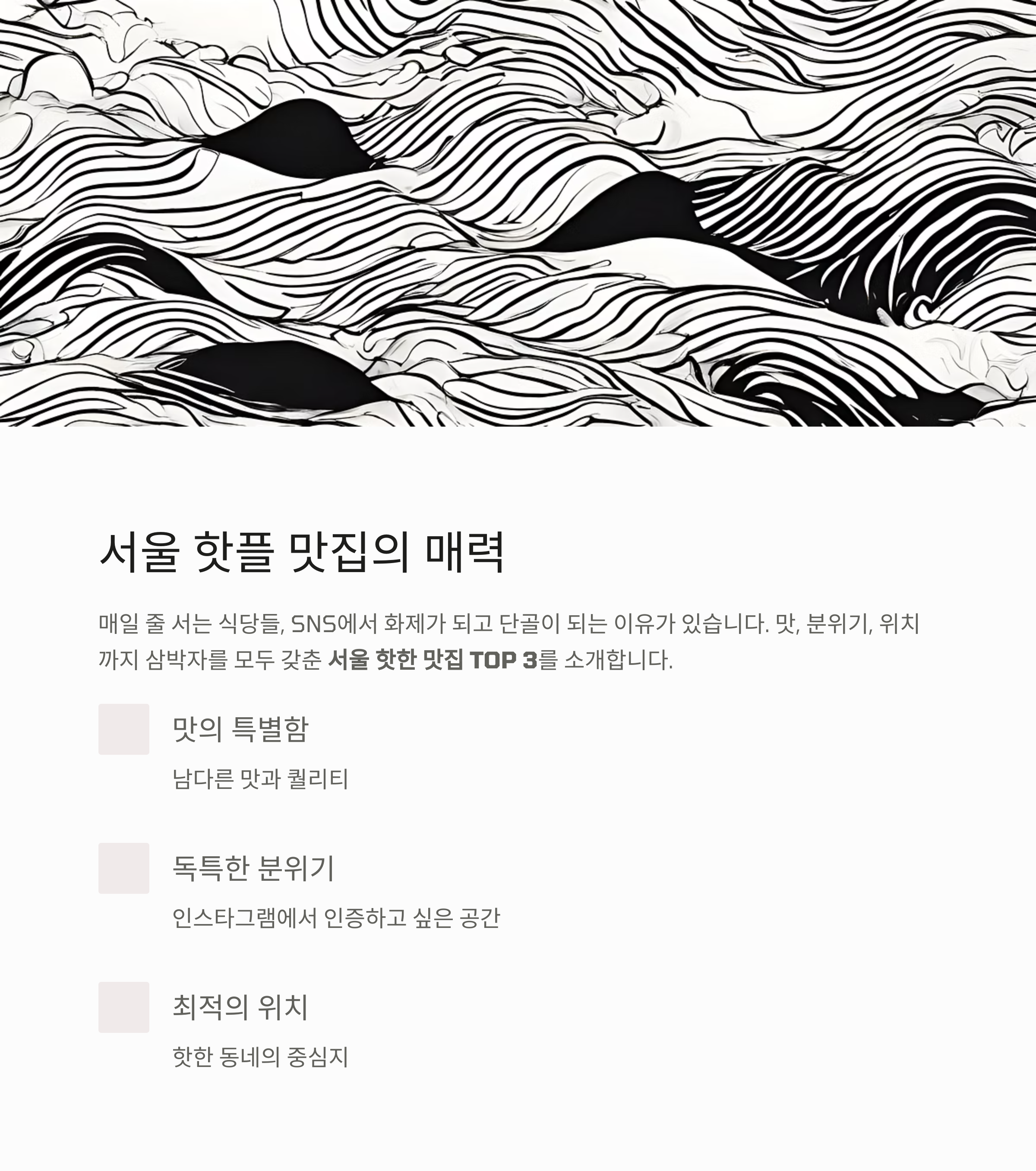 이번 글에서는 현재 서울에서 가장 핫한 맛집 TOP 3를 소개합니다.