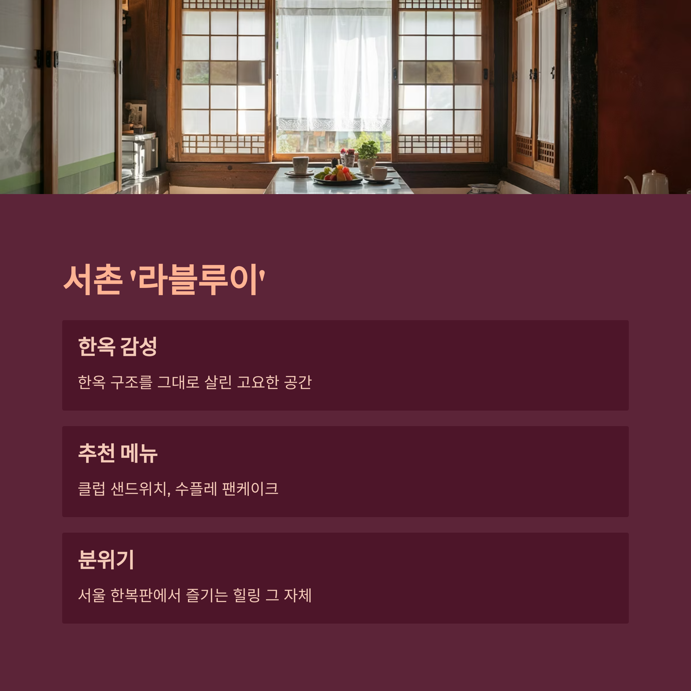 "서울 한복판에서 즐기는 한옥 감성 브런치"