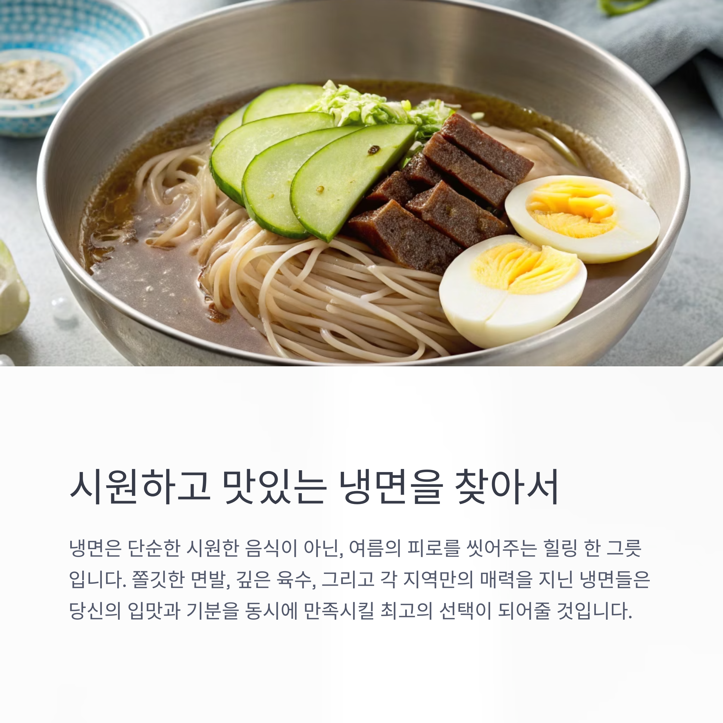 올여름, 가장 시원하고 맛있는 냉면을 찾아 떠나보세요.