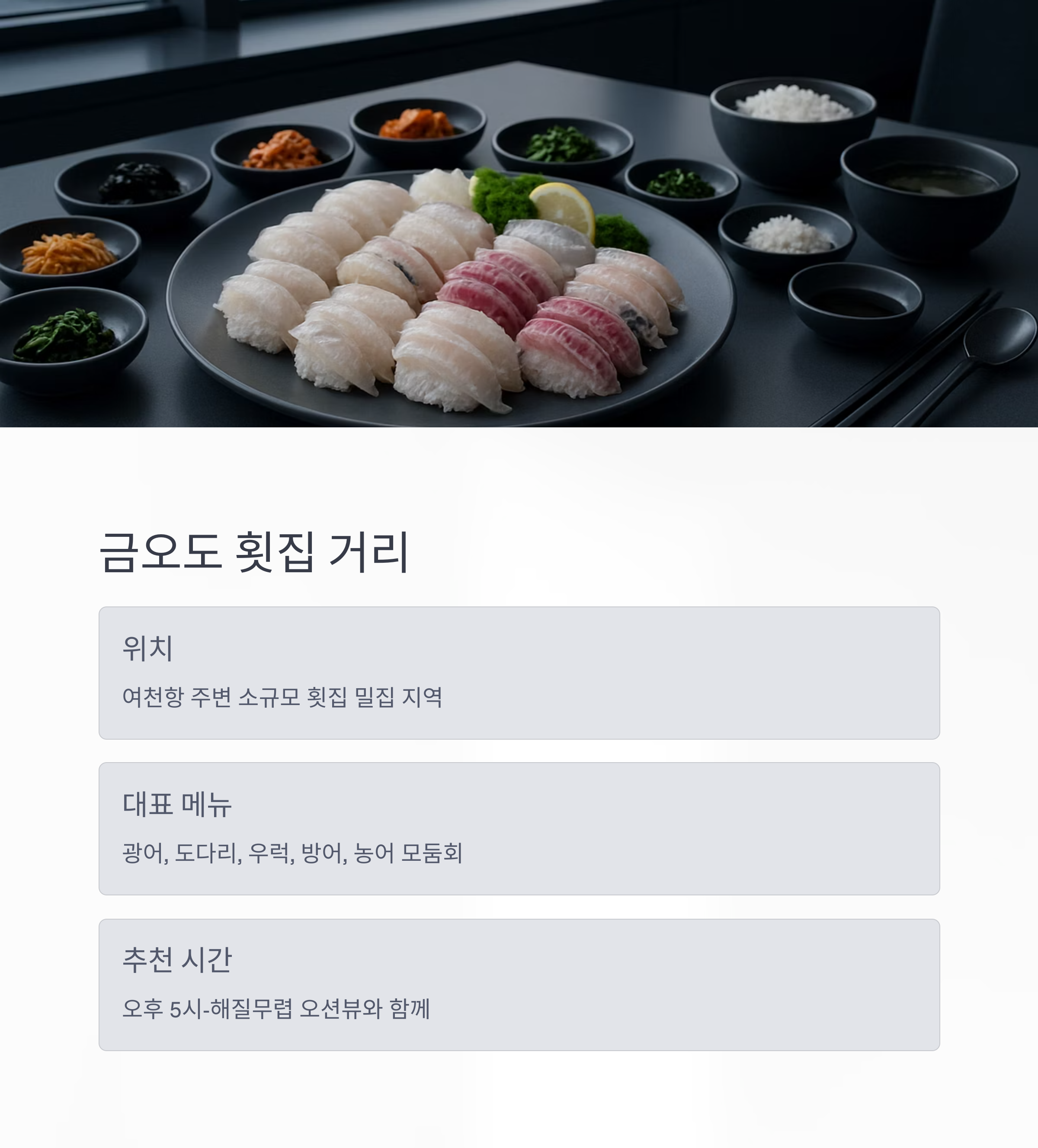 진짜 여수 바다의 맛을 경험하고 싶은 여행자들에게 제격인 곳입니다.