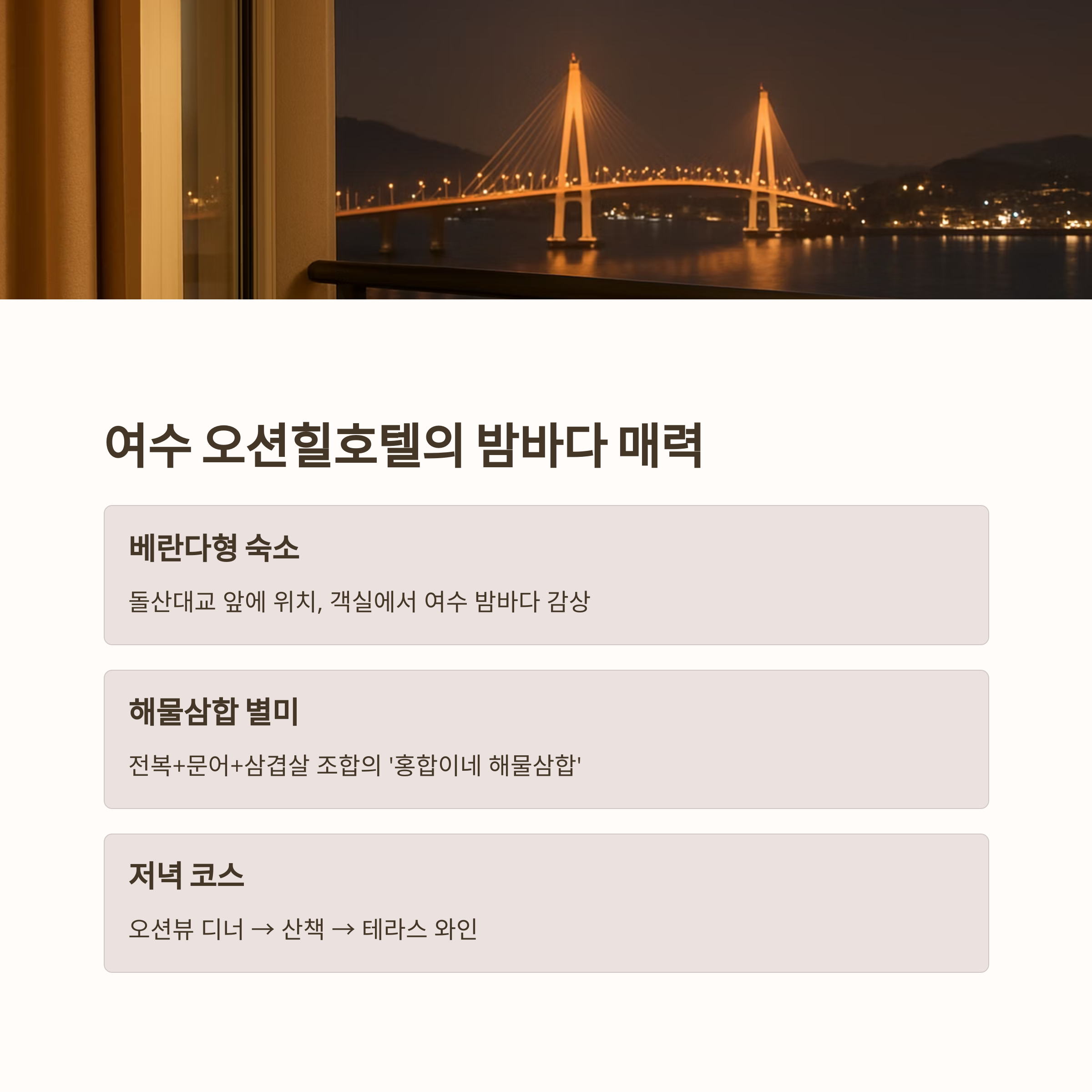 “야경 맛집 숙소에서, 여수 바다를 품은 해물밥상 한 상!”
