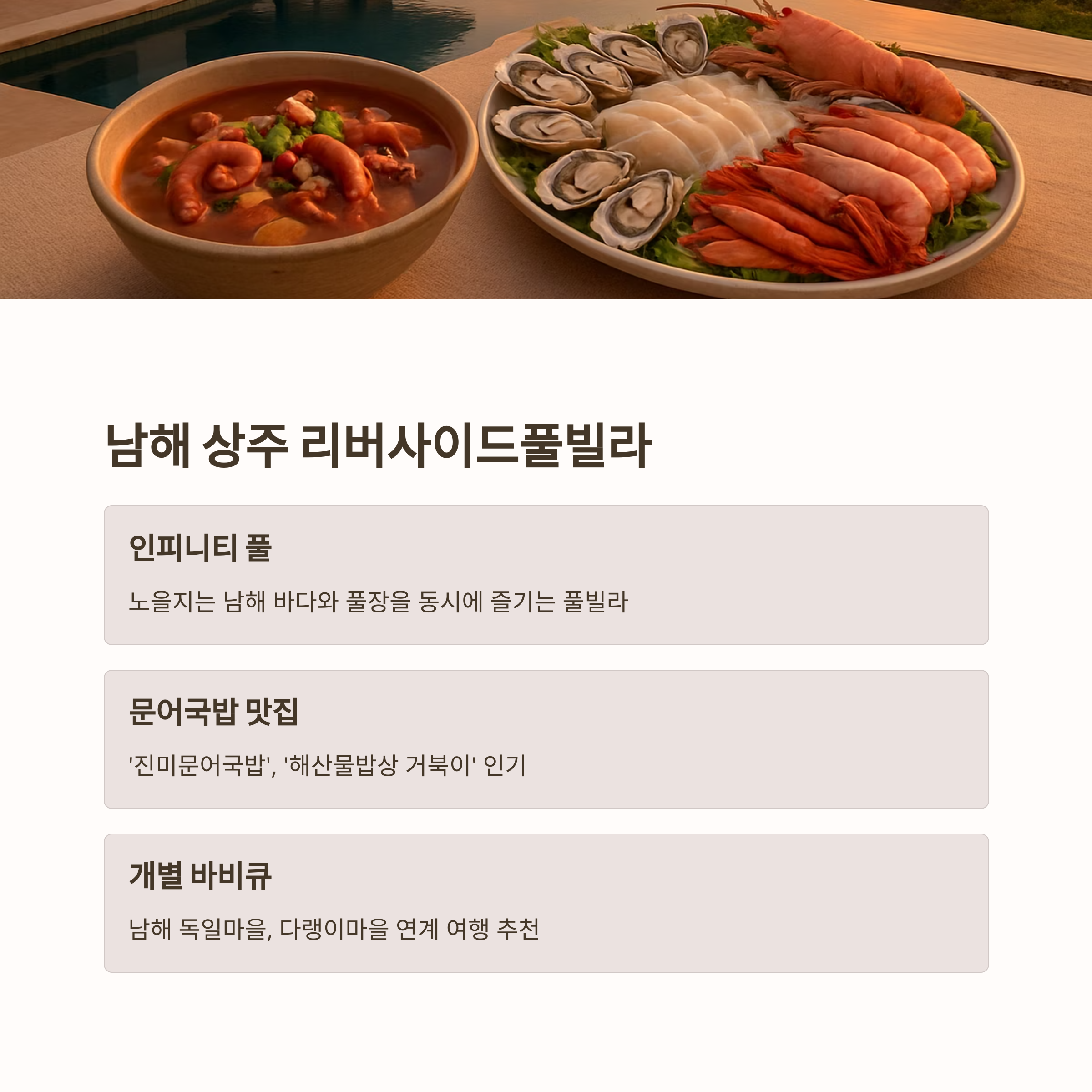 6. 남해 상주 ‘리버사이드풀빌라’ + 문어국밥 + 회정식
