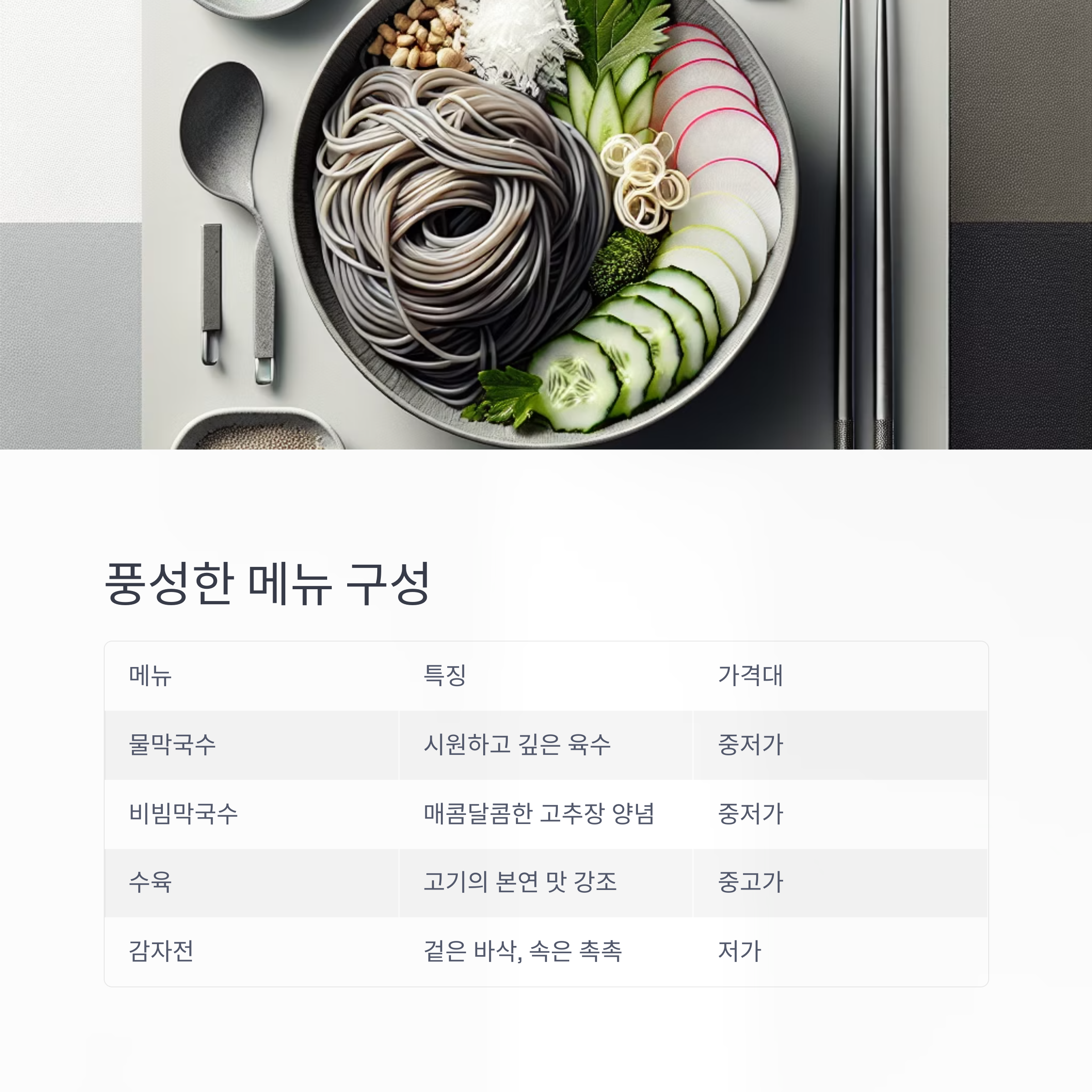 이 글에서는 김장군 막국수의 대표 메뉴, 분위기, 방문 팁까지 알차게 소개합니다.