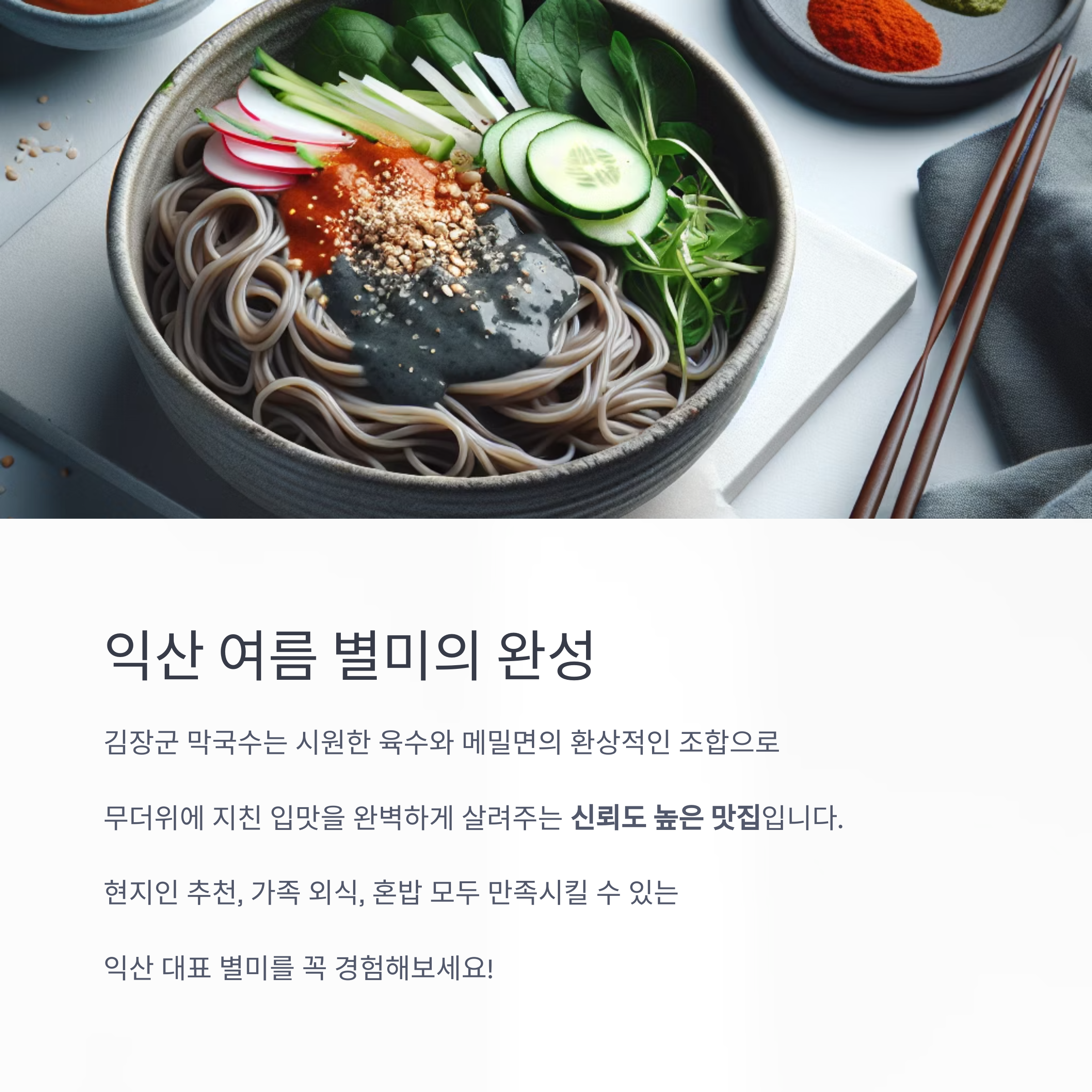 익산에서 시원한 여름 별미를 즐기고 싶다면 김장군 막국수는 반드시 방문해야 할 맛집입니다.