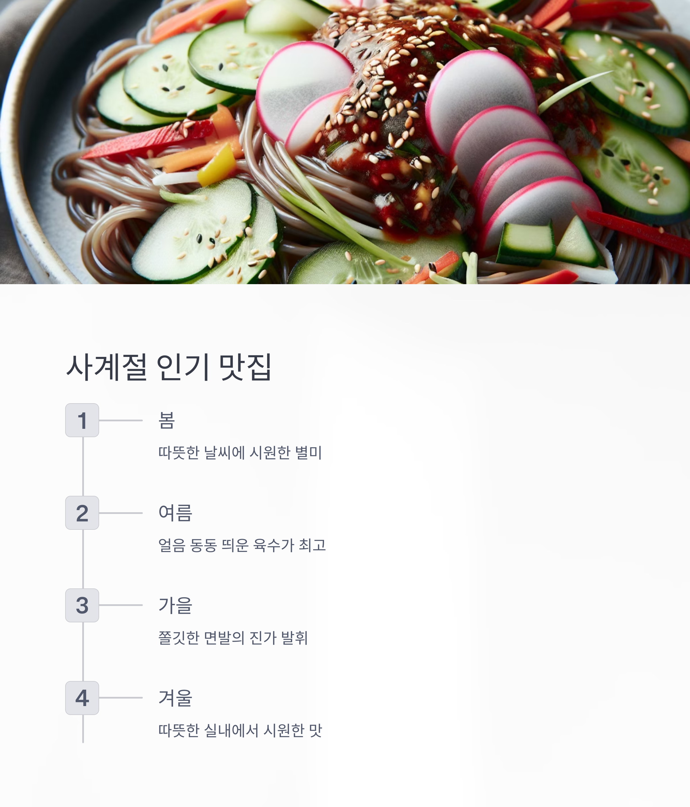 다만, 6월부터 8월 사이에는 얼음이 동동 띄워진 육수가 더욱 빛을 발하며 여름 대표 별미로 자리잡습니다.