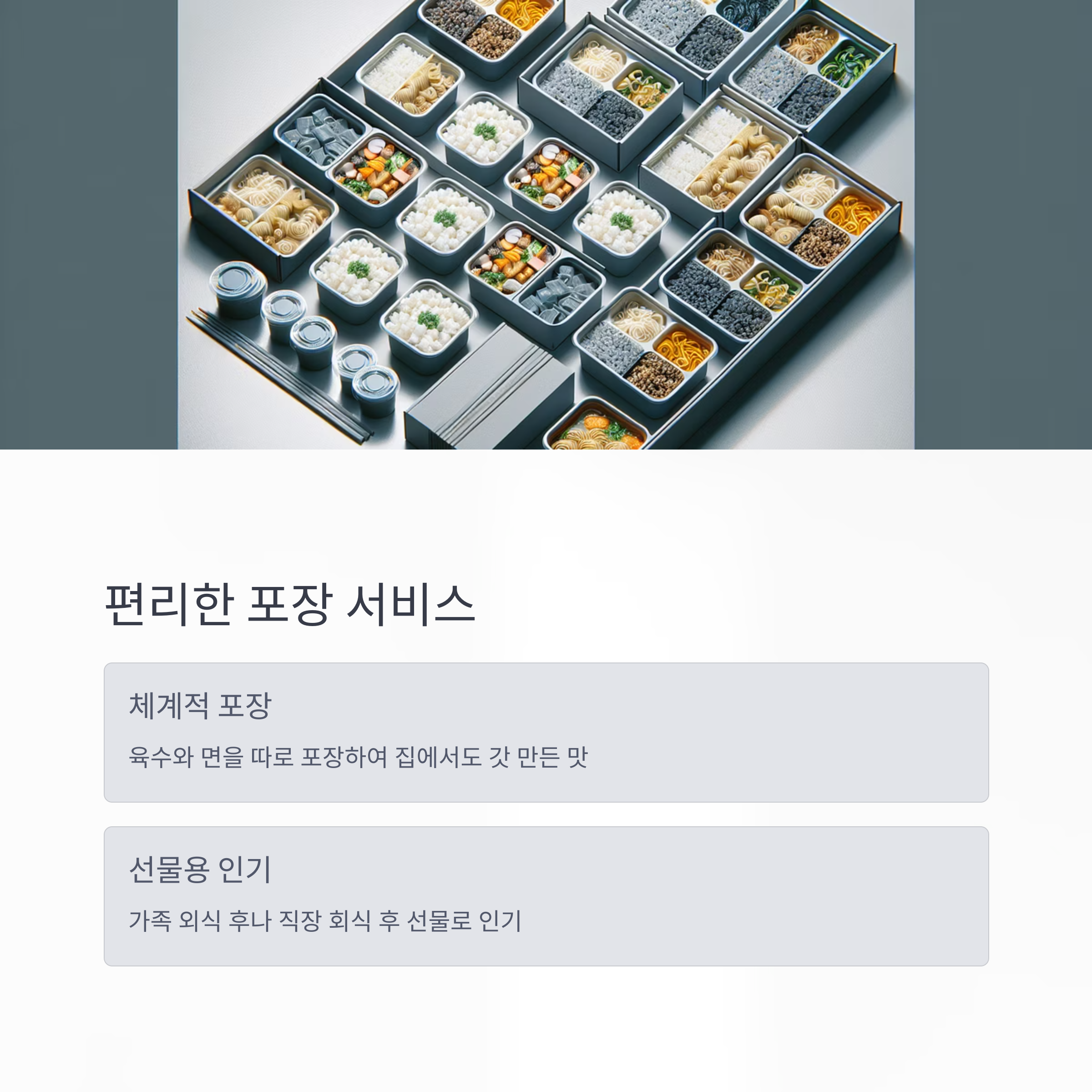 육수와 면을 따로 포장해주어 집에서도 갓 만든 맛을 그대로 즐길 수 있습니다.