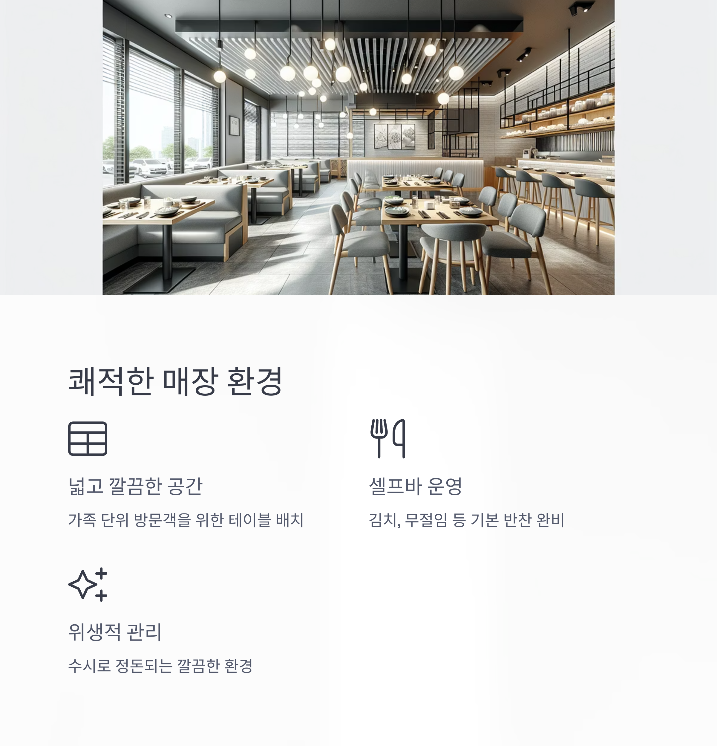 무엇보다도 사장님의 친절함과 빠른 음식 제공 속도 덕분에 점심시간에도 기다림에 대한 부담이 적습니다.