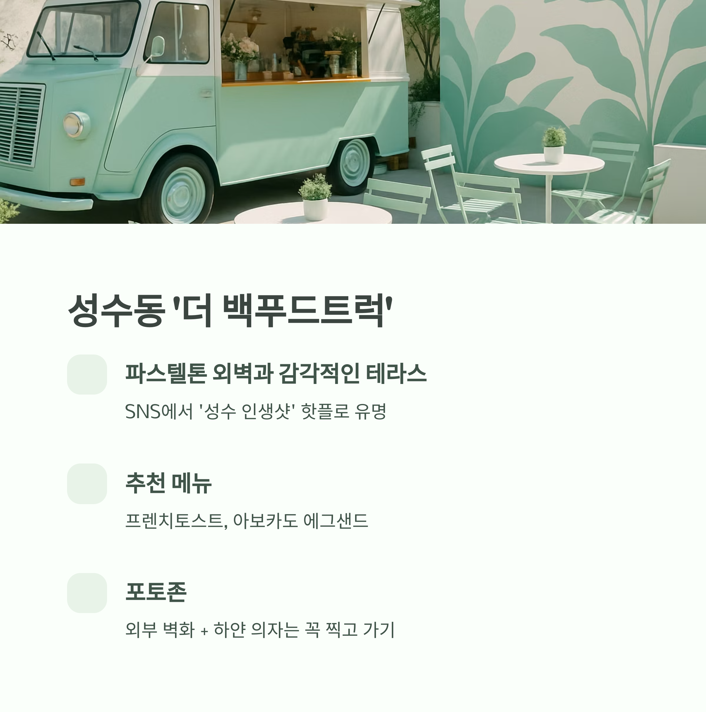 1. 성수동 ‘더 백푸드트럭’ - 스트리트 감성 가득한 브런치