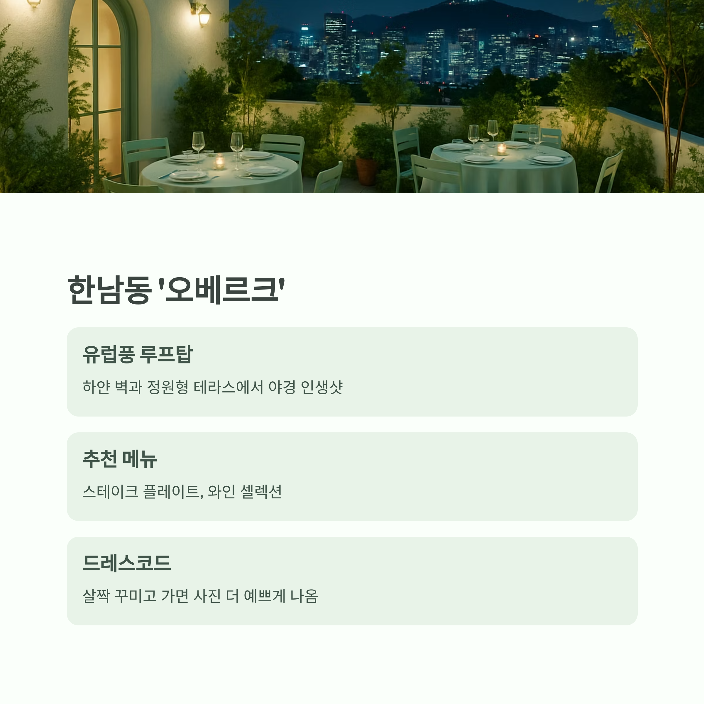 | 드레스코드 | 살짝 꾸미고 가면 사진 더 예쁘게 나옴 |