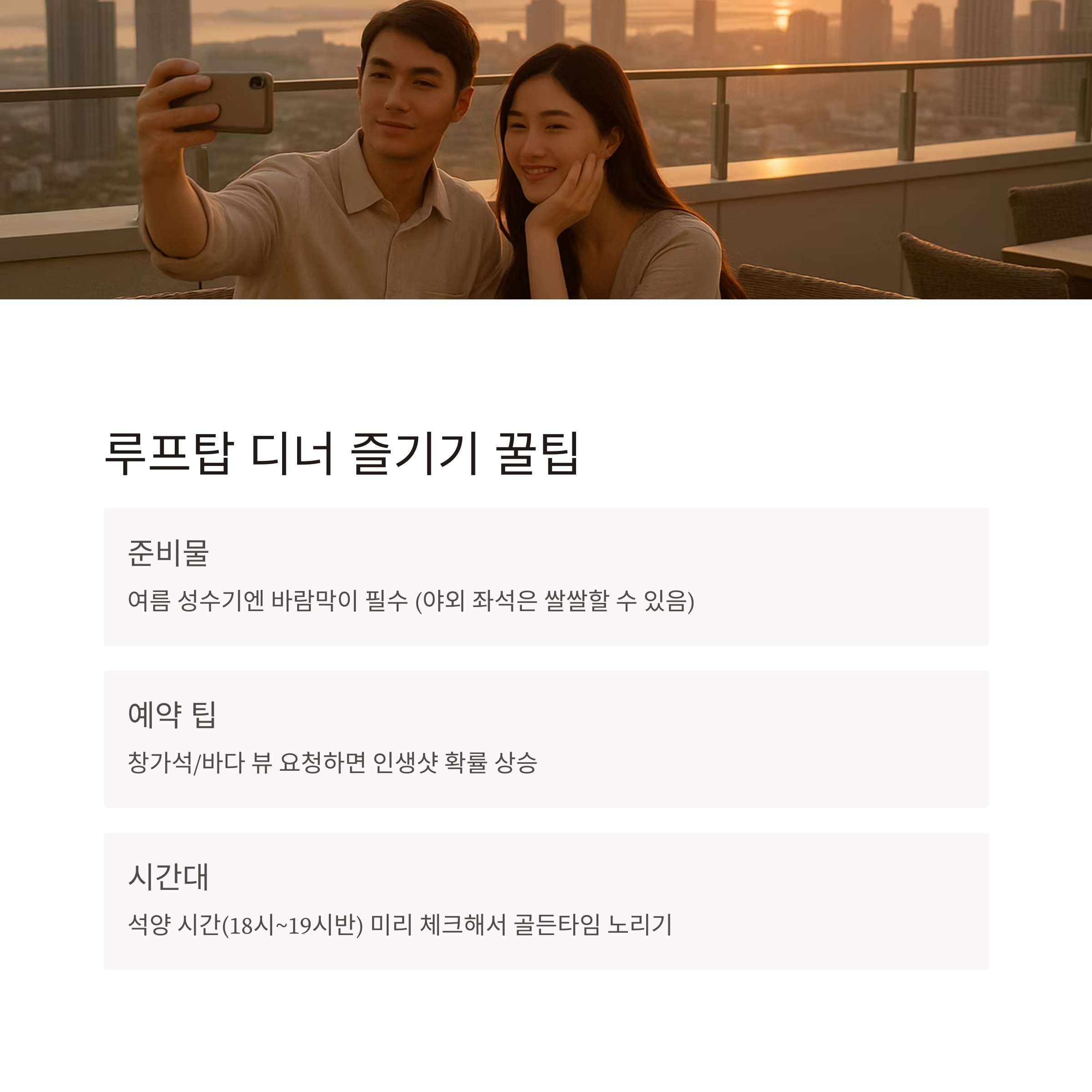 뷰도 맛도 낭만도 다 잡았다! 인천에서 즐기는 감성 가득 루프탑 디너