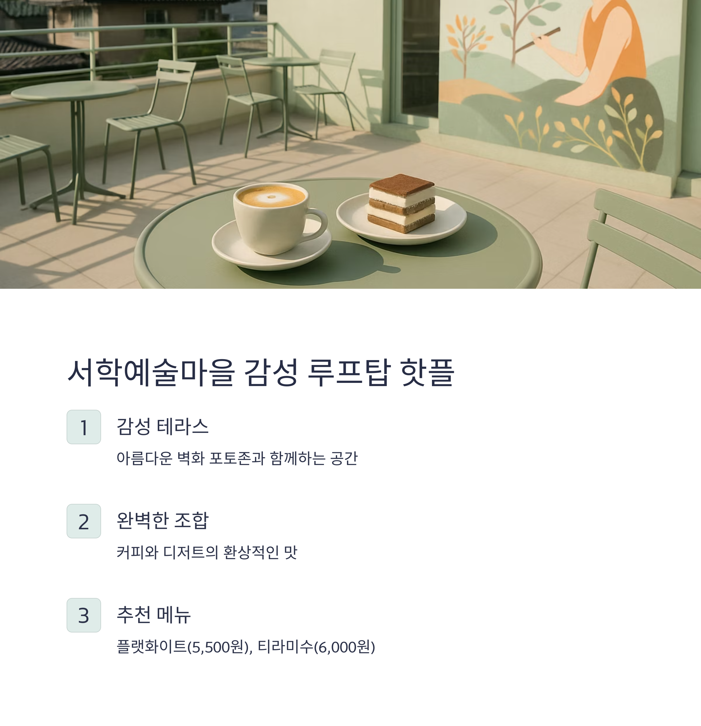 | 오후 12시 | 루프앤테라스 | 감성 커피 + 디저트 |