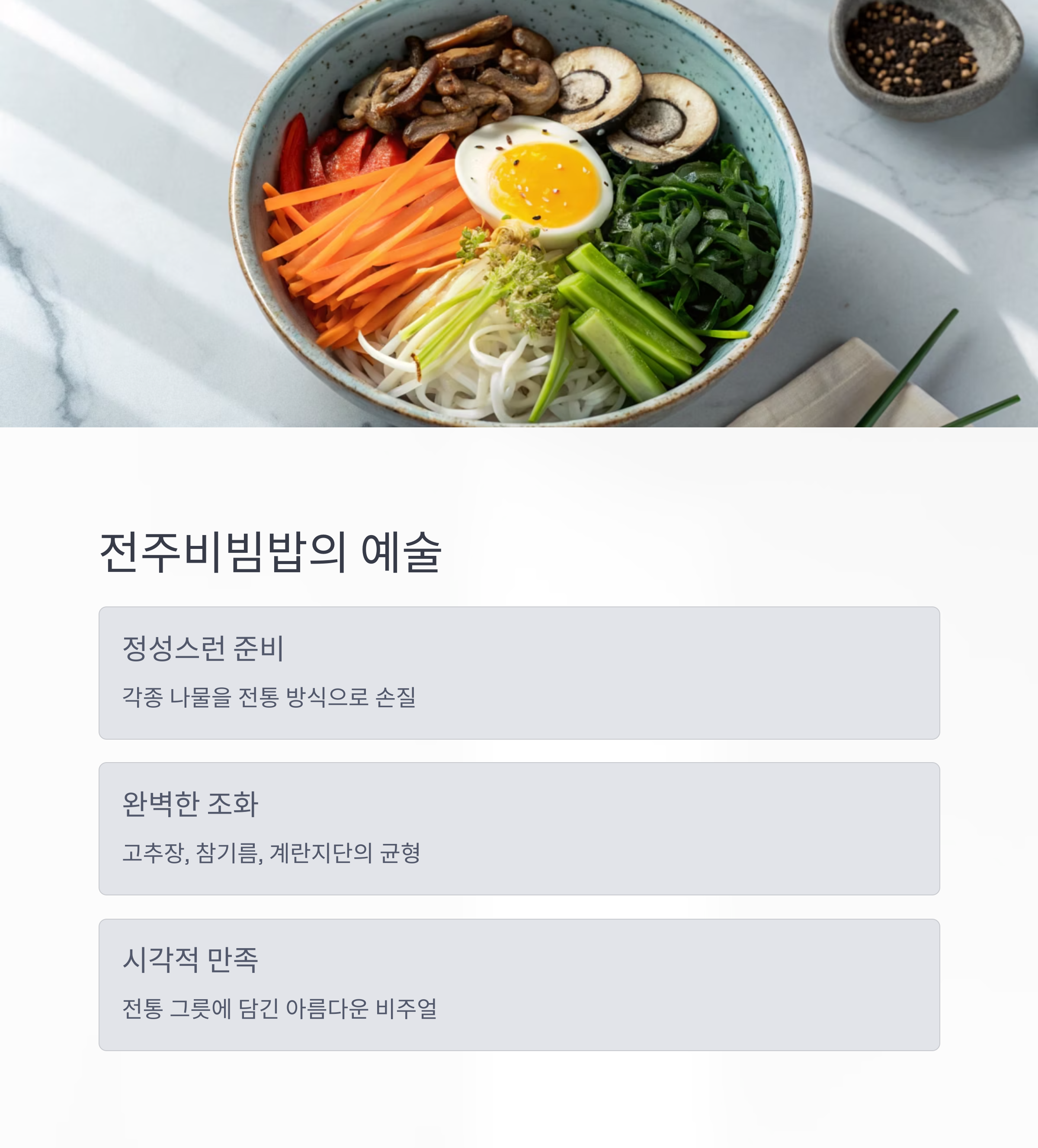 전주비빔밥 – 시간과 정성이 담긴 대표 음식