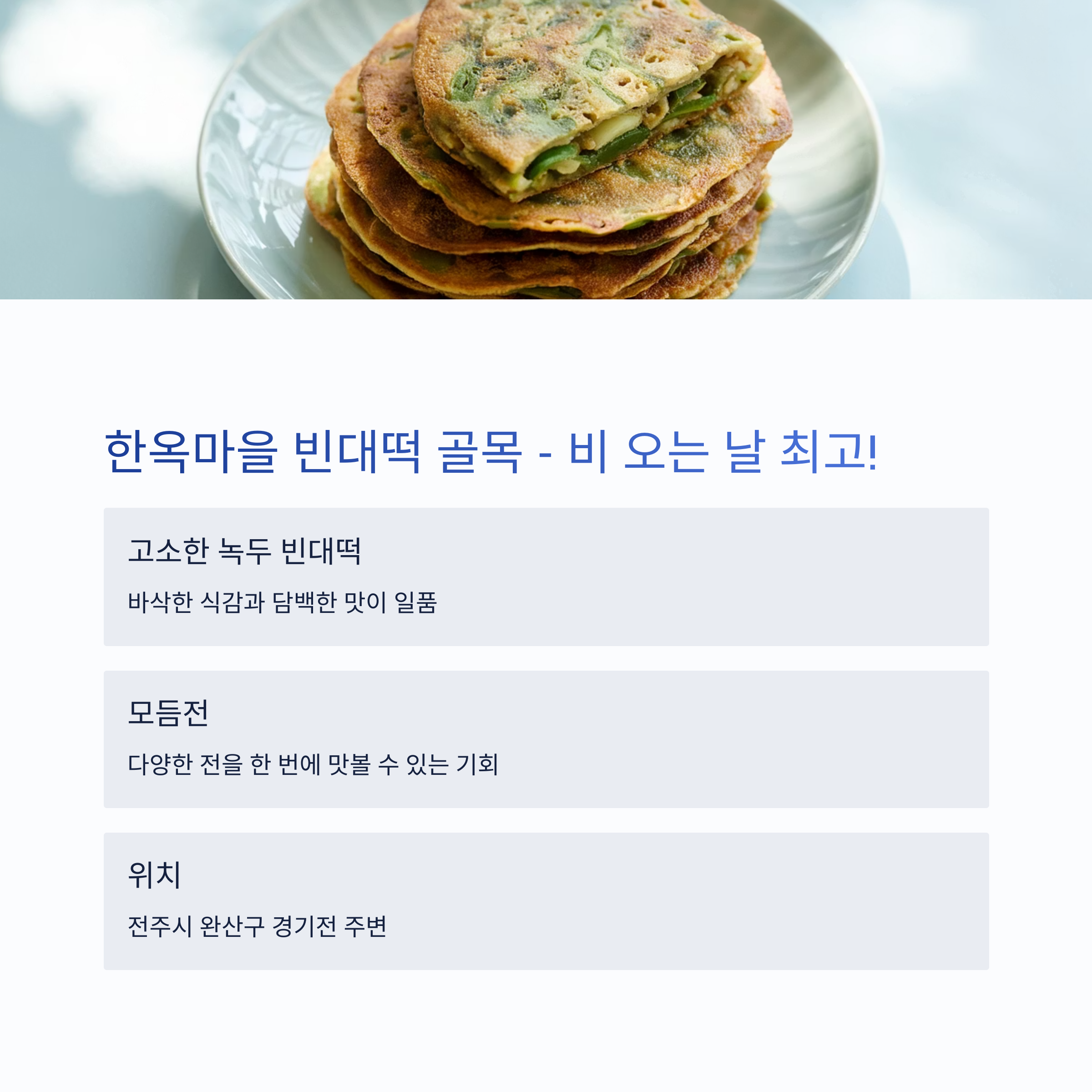 "비 오는 날, 전주 한옥마을에서 빈대떡 한 장 어때요?"