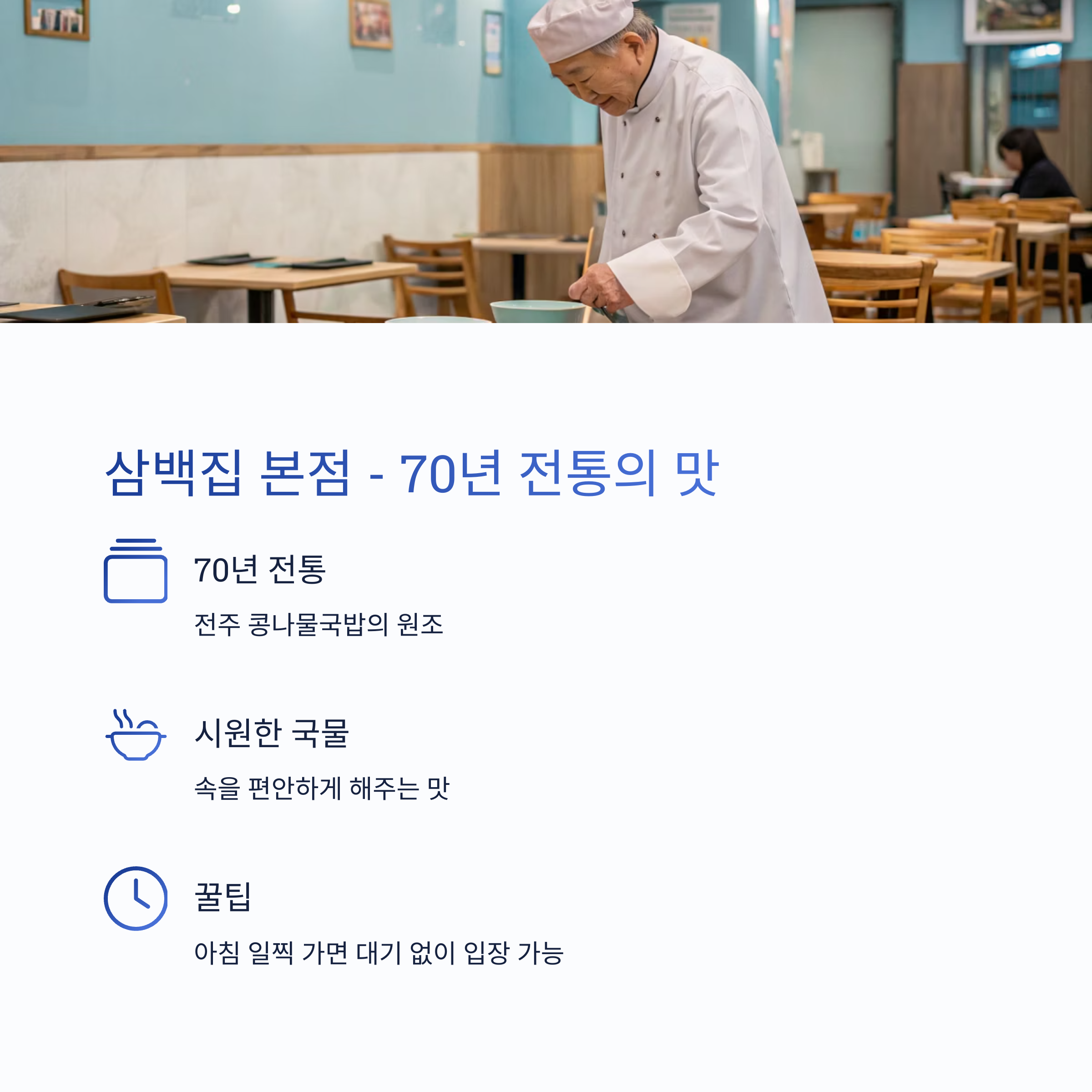 "전주에 오면 삼백집 콩나물국밥은 무조건 먹어야 합니다."