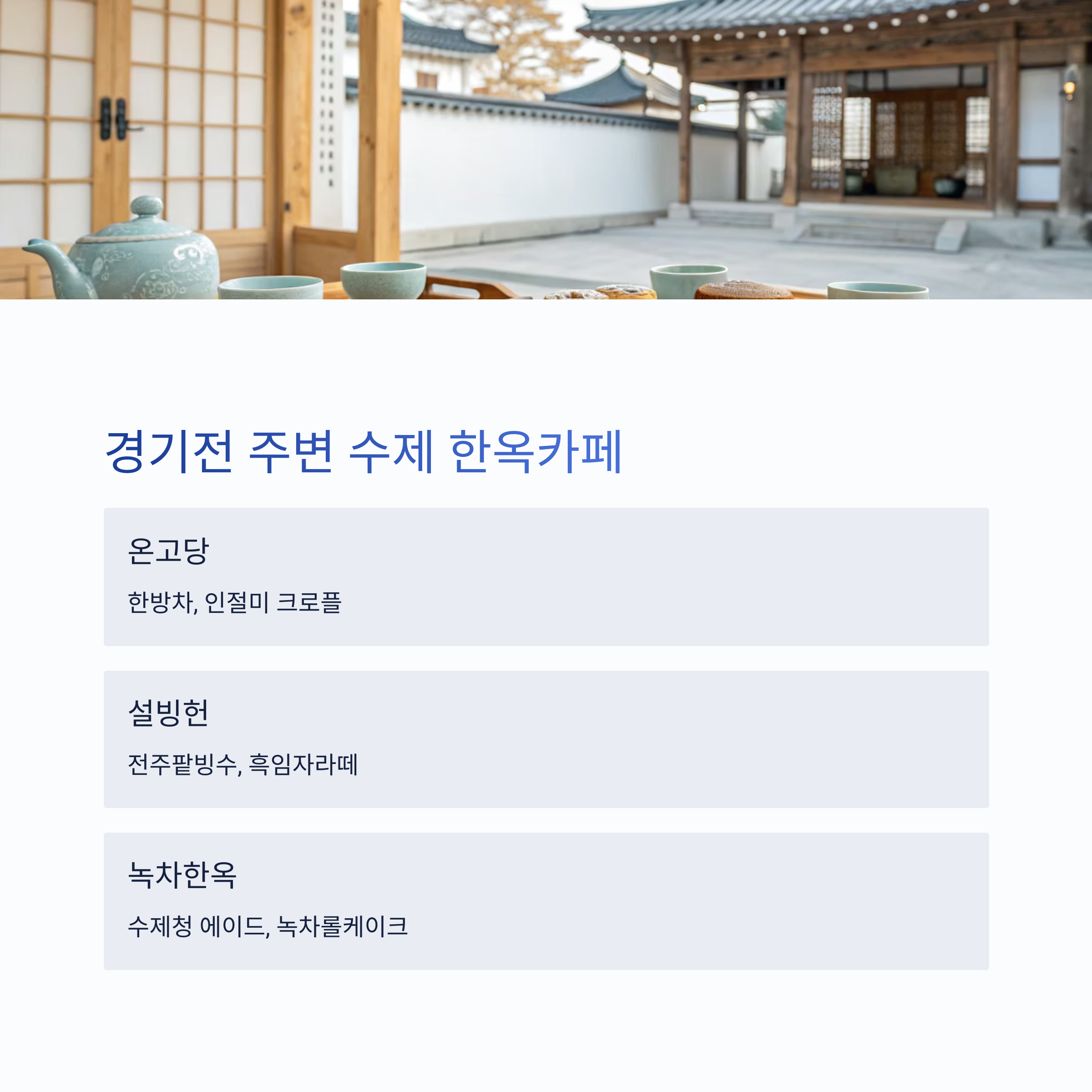 수제 디저트와 한방차를 여유롭게 즐길 수 있습니다.